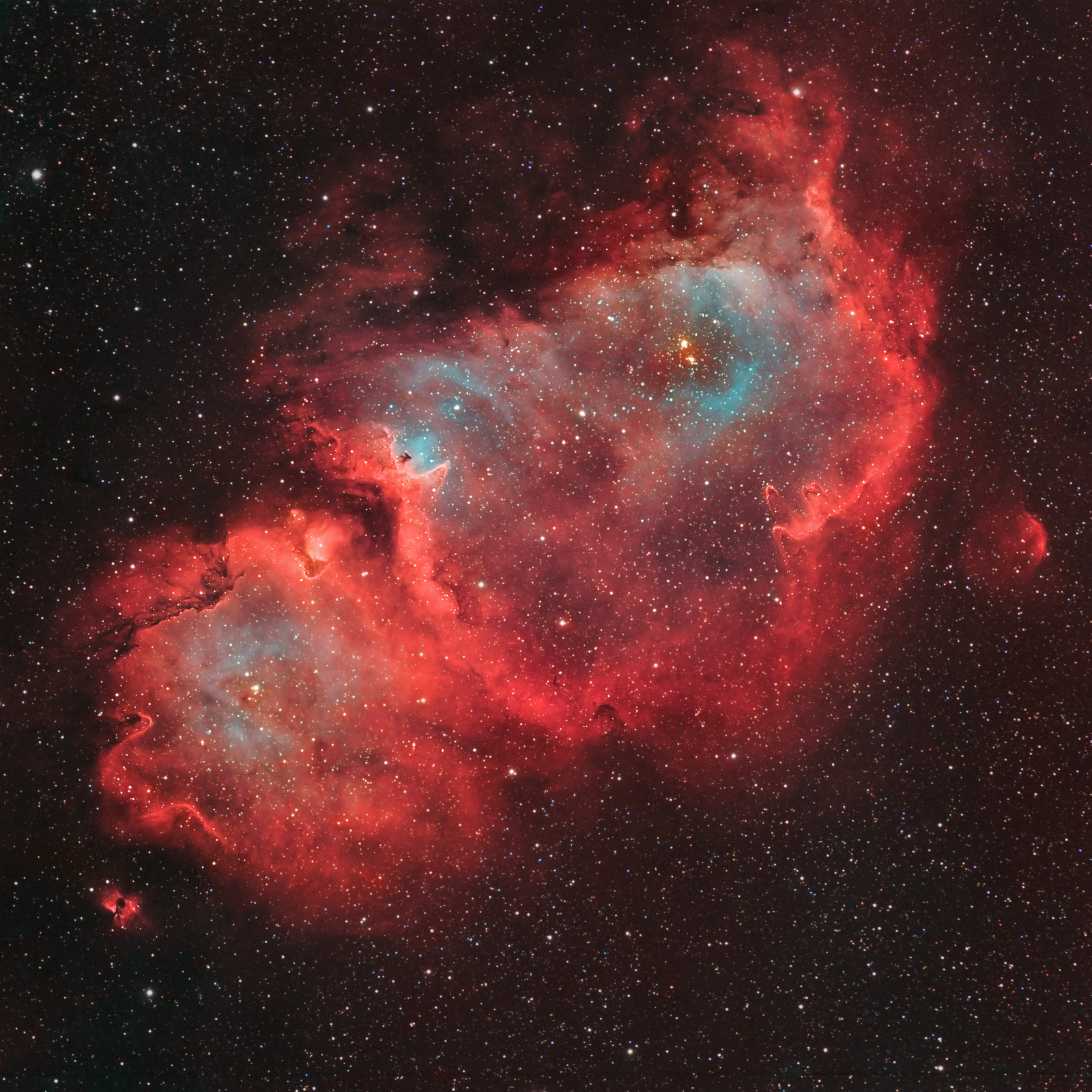 IC 1848 - der Soul-Nebel befindet sich in direkter Nachbarschaft von IC 1805, dem Herz-Nebel. Beide Objekte strahlen intensiv in den Emissionslinien H-alpha und OIII. Der SII-Anteil ist relativ schwach.