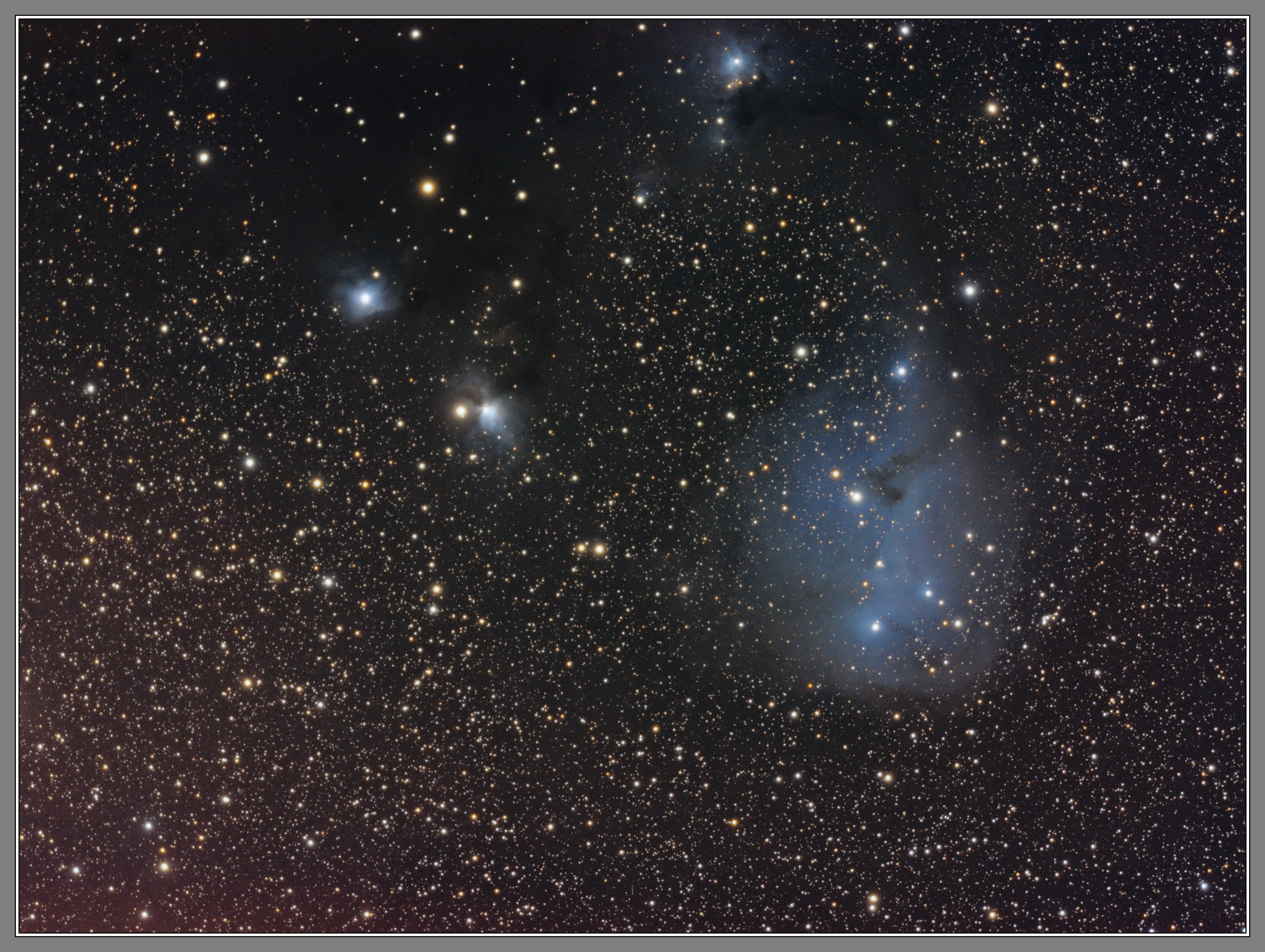 Der Reflexionsnebel im Sternbild Einhorn hat eine Ausdehnung von 25' x 25'. Schlechte Transparenz erschwerte mir das Leben bei der Bildbearbeitung!