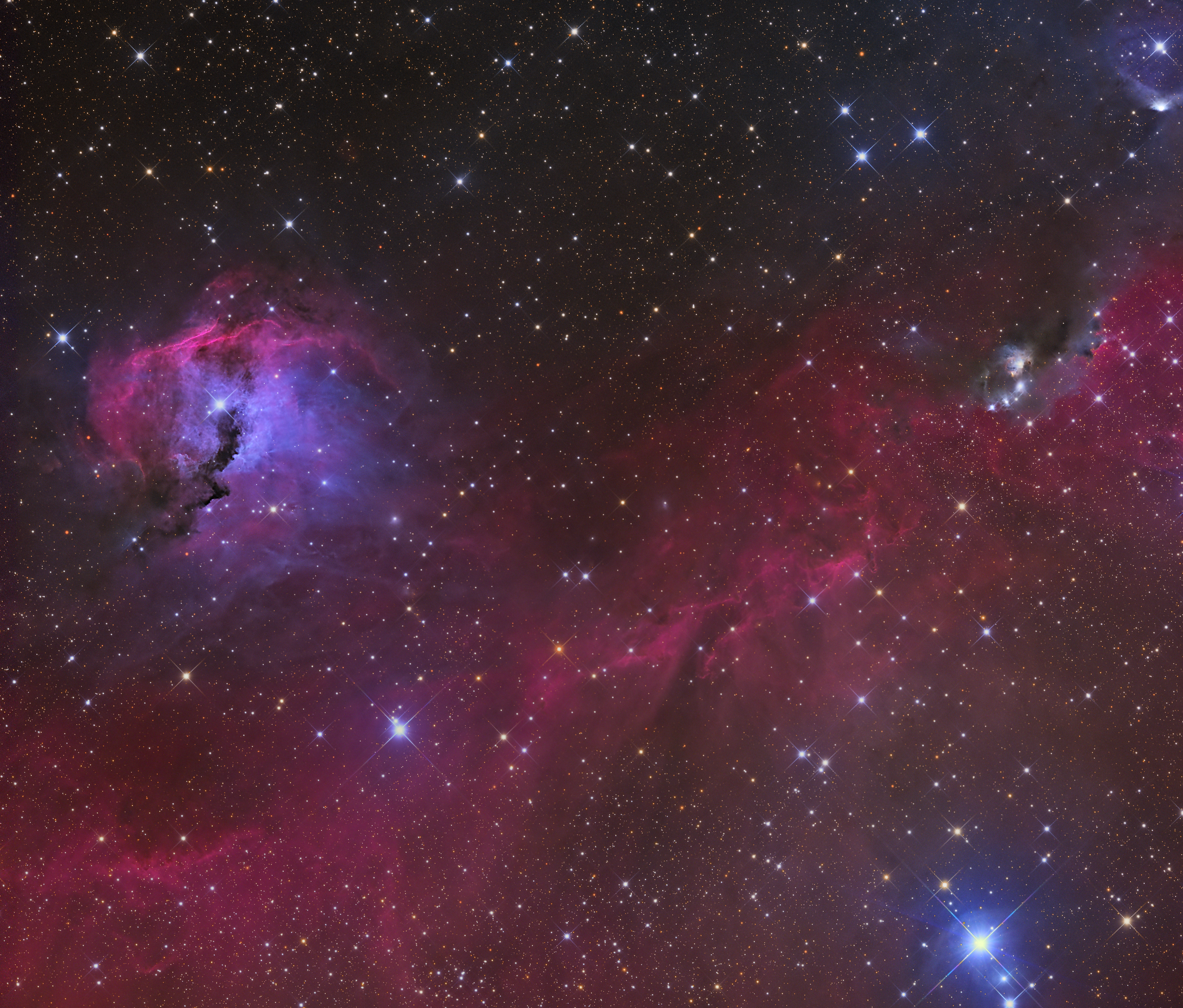 Der Nebel IC 2177 im Sternbild Einhorn ist auf Grund seiner Schönheit ein sehr häufig fotografiertes Objekt. Ich bei der Wahl des Bildausschnitss versucht, die interessantesten Bereiche zu darzustellen.