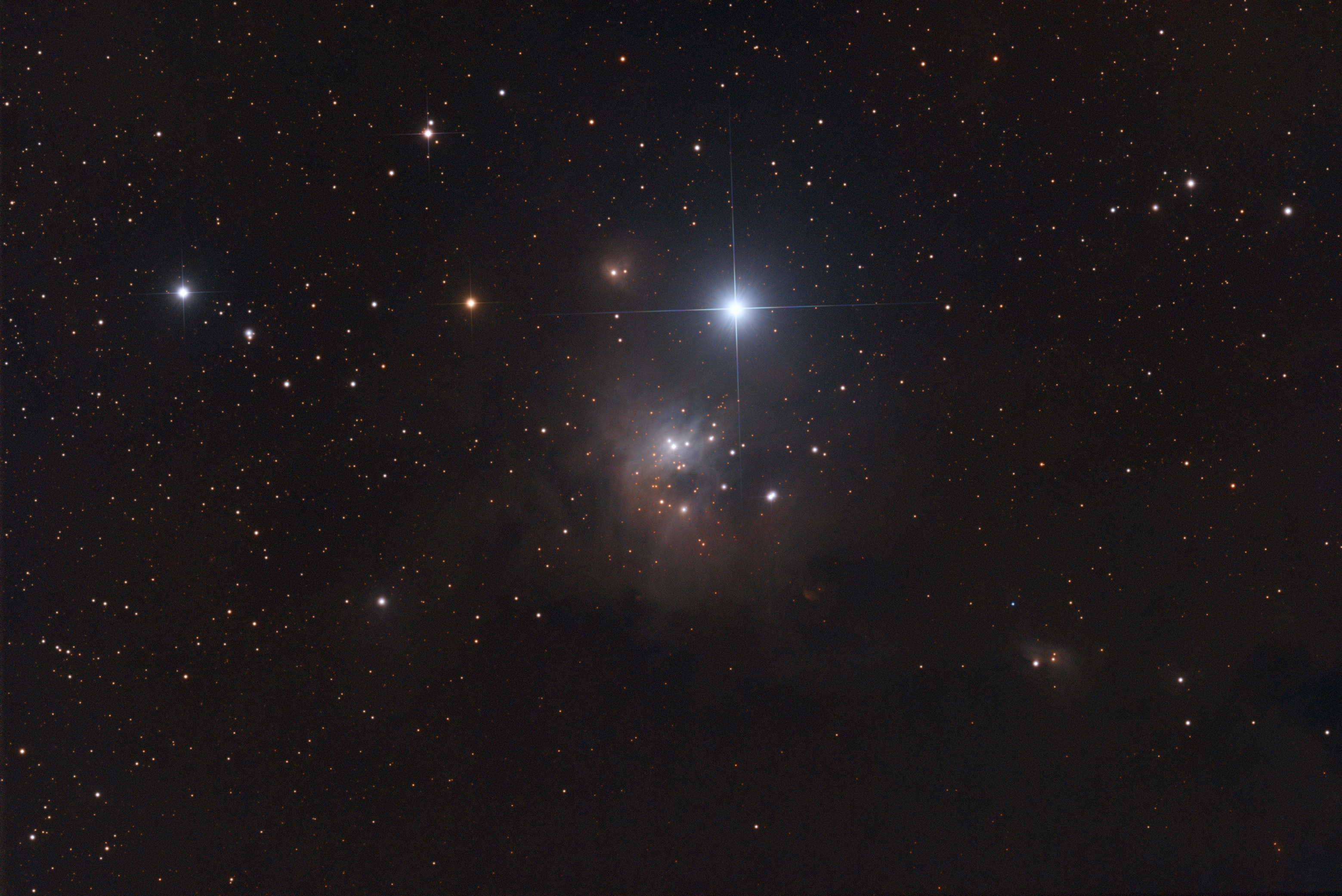 Der schwache Nebel mit der Bezeichnung IC348 ergibt mit dem rund 3,8 mag hellen Vordergrundstern ein beinahe mystisches Motiv. Die Reflexe des hellen Sterns im Griff zu behalten, ist eine Herausforderung.