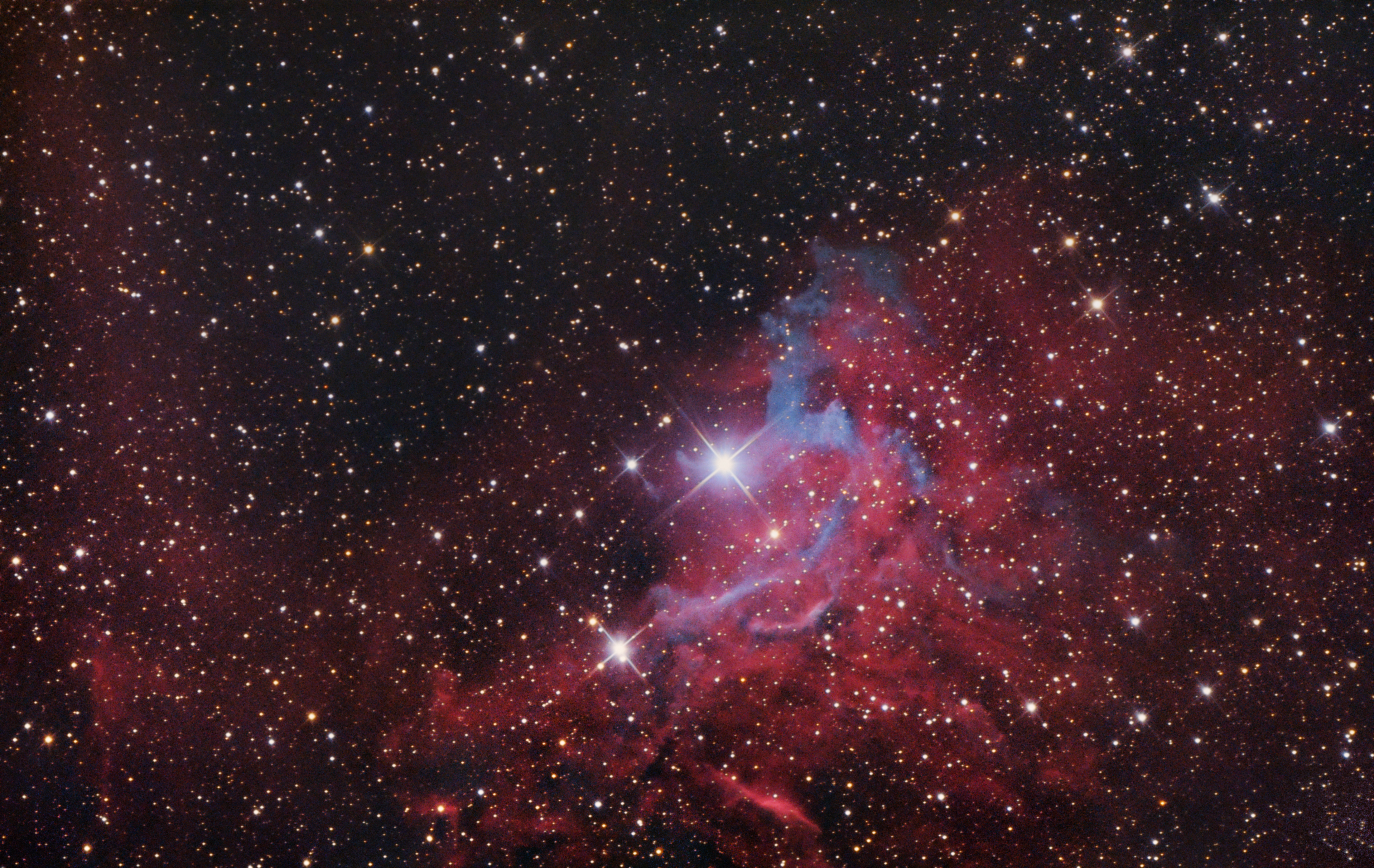 Der Nebel ist eine Kombination aus Reflexions- und Emissionsnebel. Dichtere Bereiche des Nebels bestehen aus Staubteilchen. Diese reflektieren das Licht des Sterns und leuchten daher in dessen bläulicher Farbe.