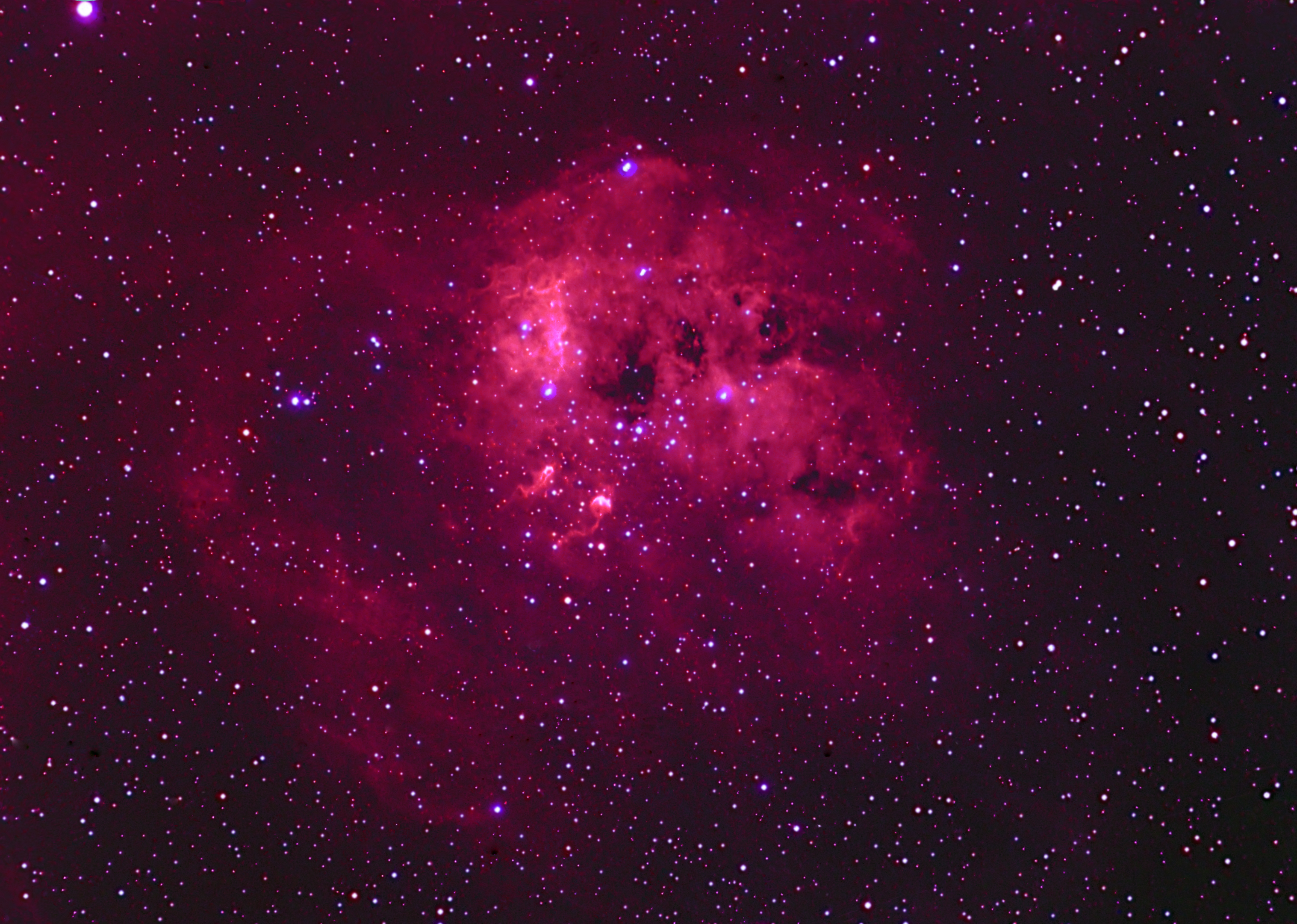 Der Emissionsnebel IC 410 im Sternbild Fuhrmann umgibt den jungen Sternhaufen NGC 1893. Wie auf dem Foto zu erkennen ist, haben Materieströme zwei kaulquappenähniche Gebilde geformt. Dieses Foto wurde einige Tage nach dem Vollmond und noch vor der Schlechtwetterperiode bei uns in Norddeutschland aufgenommen.