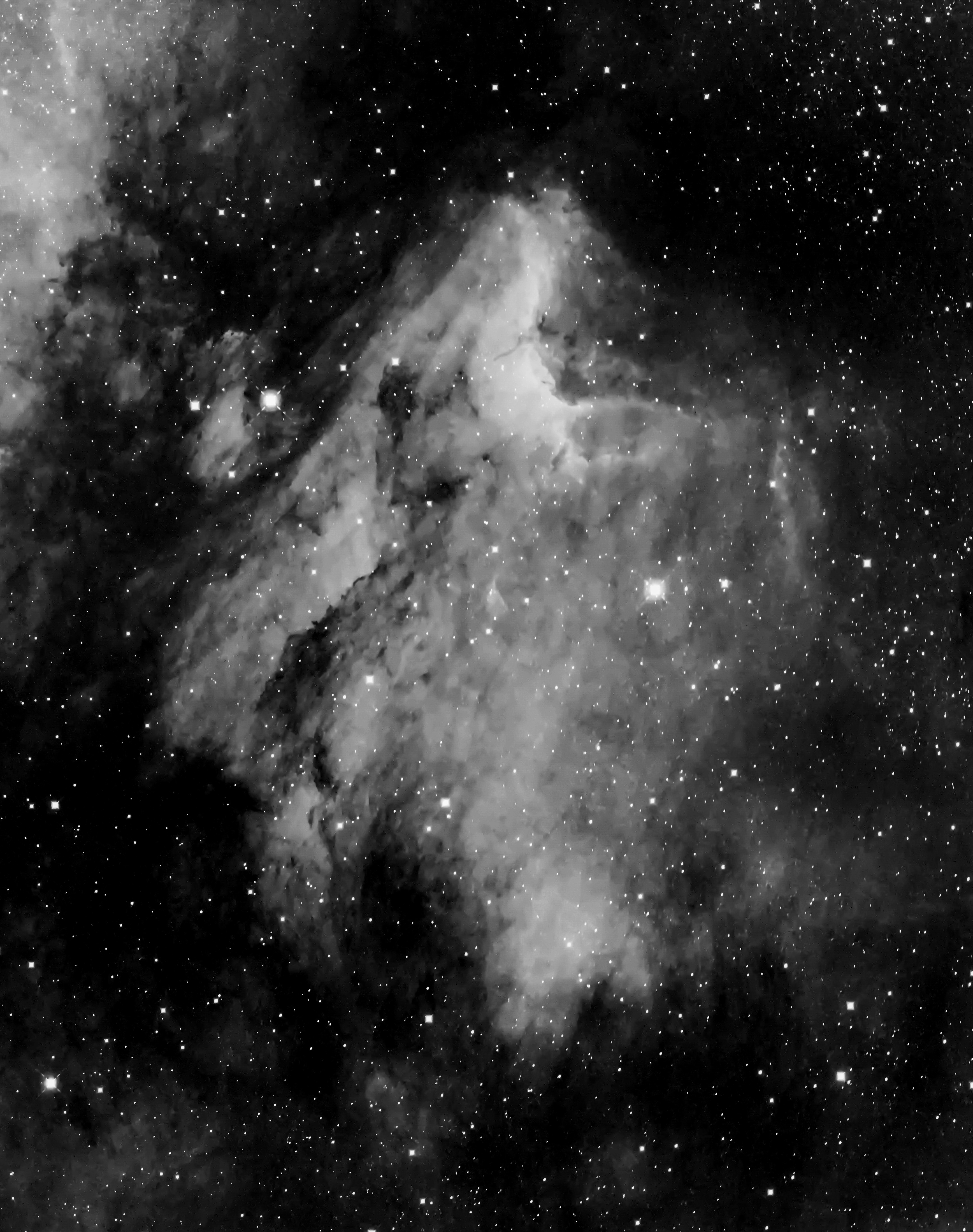 Eine weitere bearbeitete Aufnahme vom Pelikannebel mit H-Alpha-Filter.