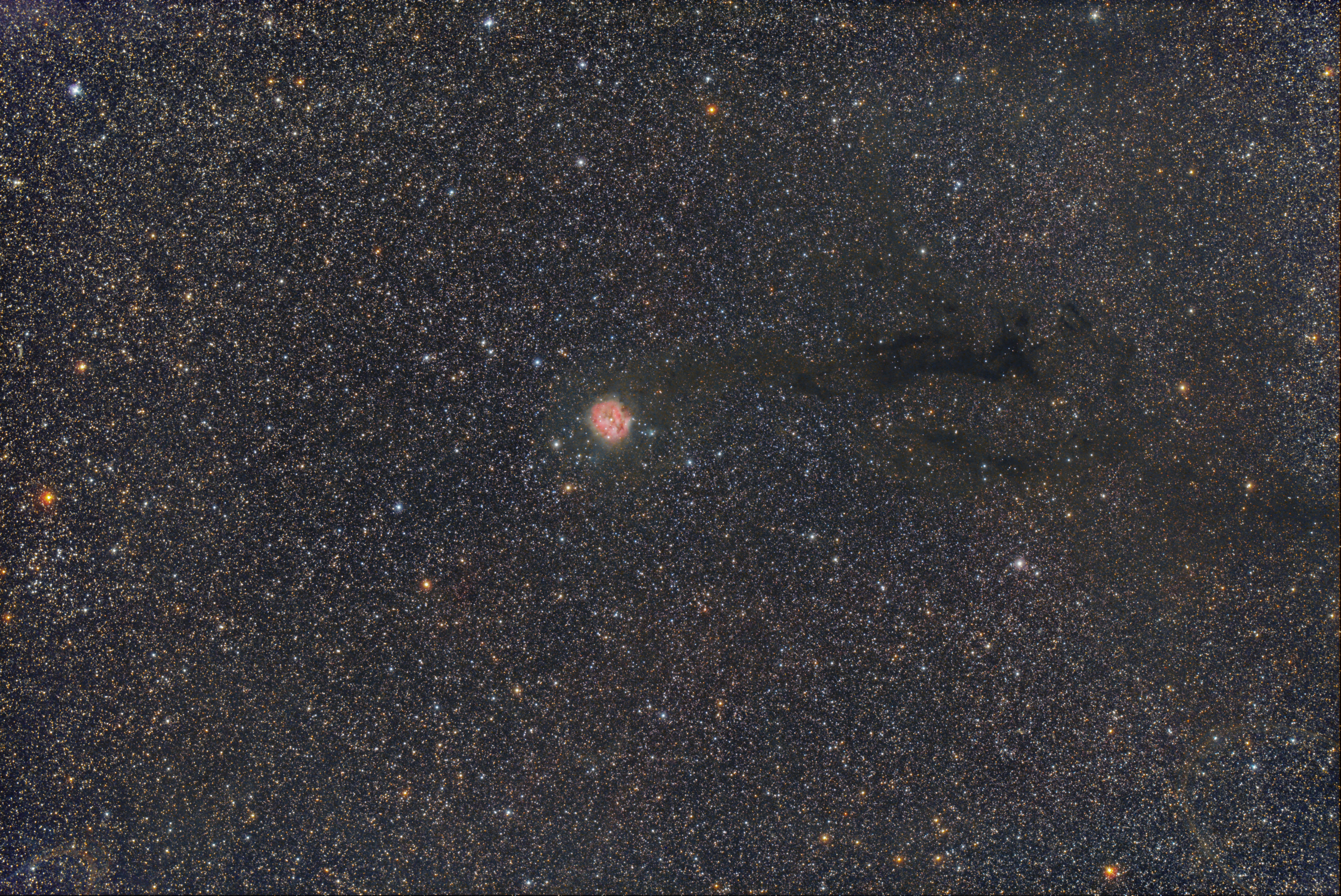 IC 5146, auch als Kokonnebel bezeichnet, liegt im Sternbild Schwan.