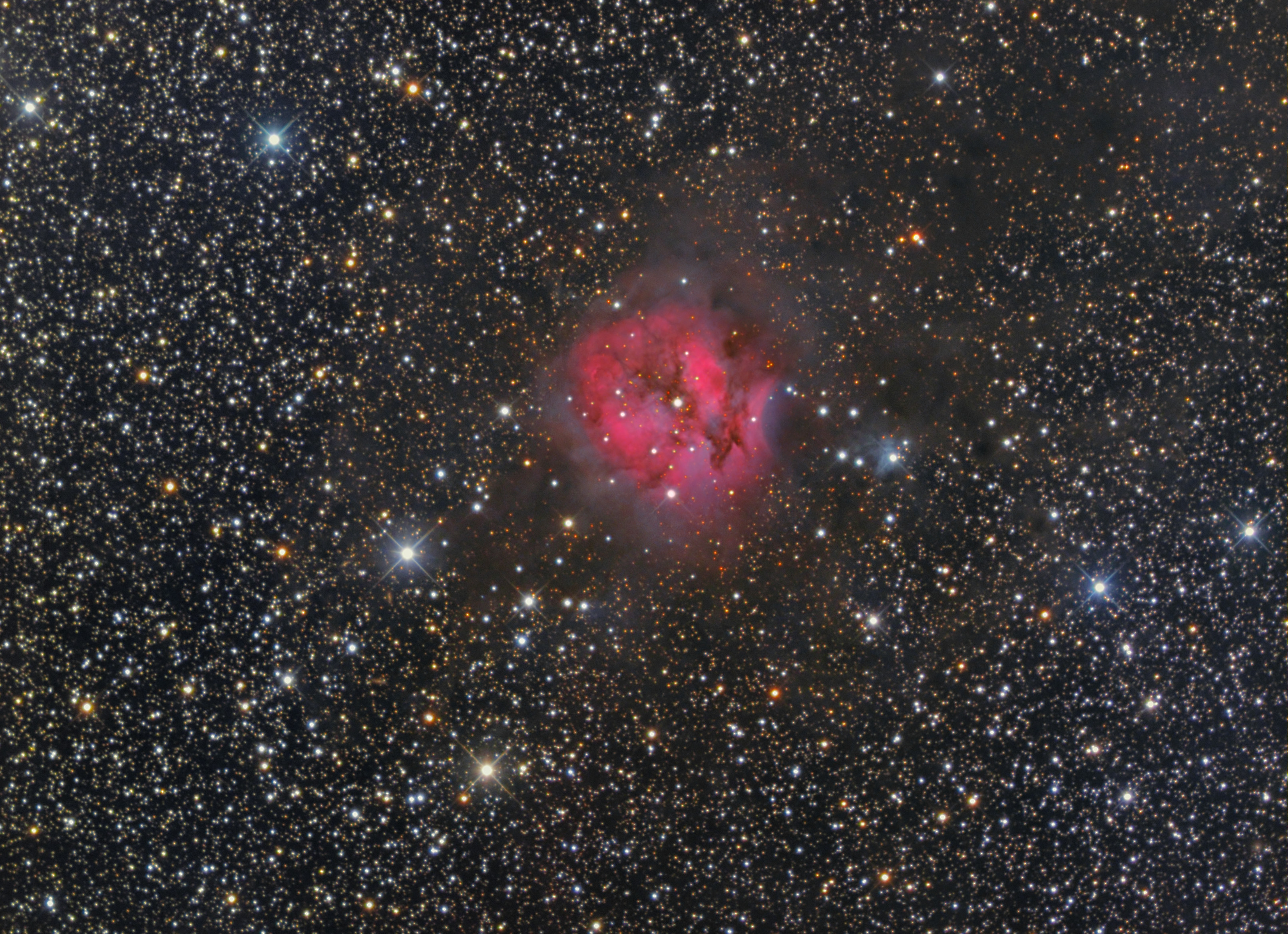 Der Kokon-Nebel IC 5146 liegt im Sternbild Schwan und enthält den offenen Sternhaufen Collinder 470. Der Nebel ist etwa 3000 Lichtjahre von uns entfernt und hat eine Ausdehnung von rund 10 Lichtjahren. IC 5146 befindet sich am östlichen Ende der länglichen Dunkelwolke Barnard 168, entdeckt fotografisch von Edward Barnard im Jahr 1893.