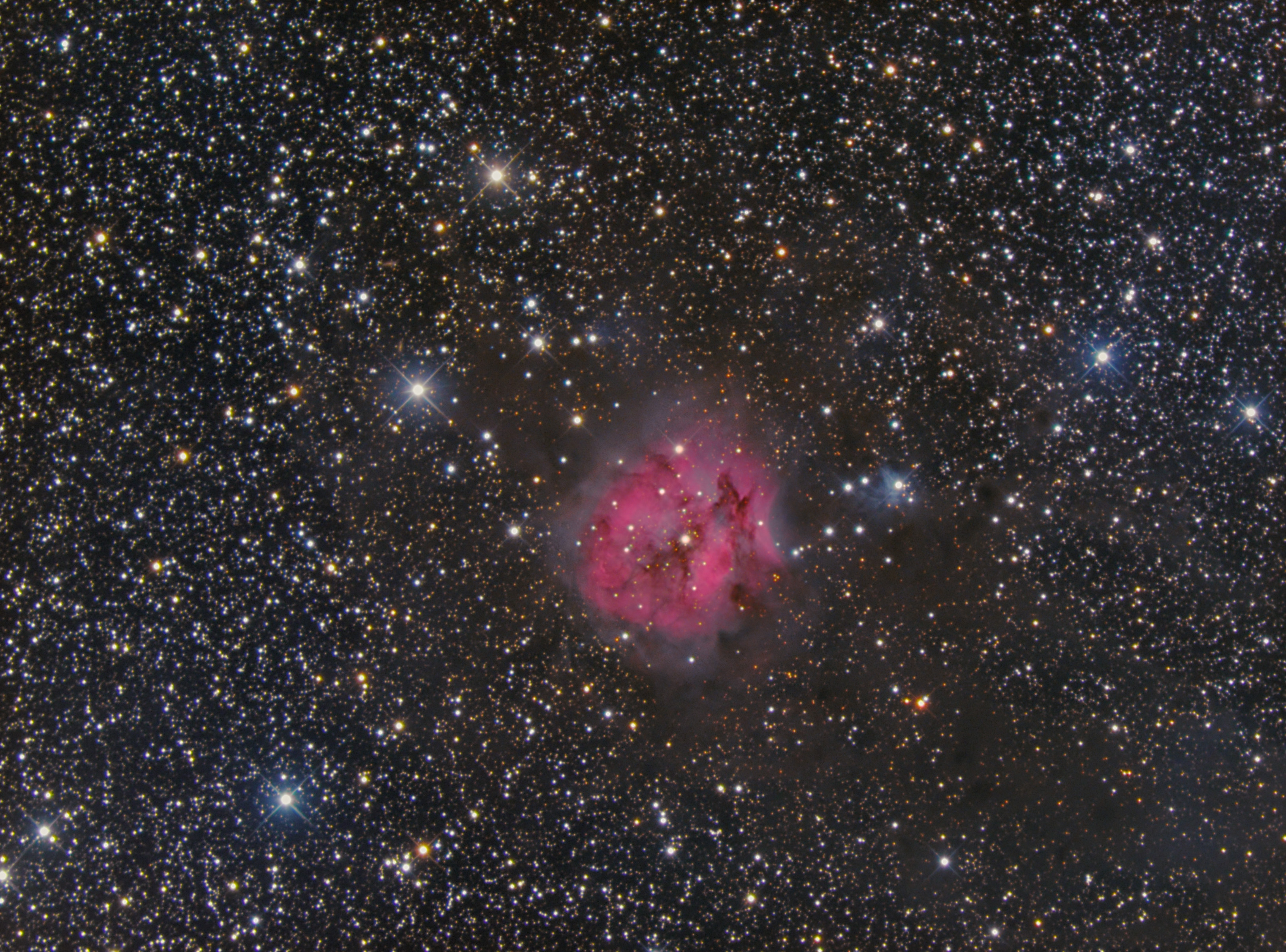 Im Kokonnebel ist der offene Sternhaufen Collinder 470 eingebettet. Beides liegt im Sternbild Schwan.