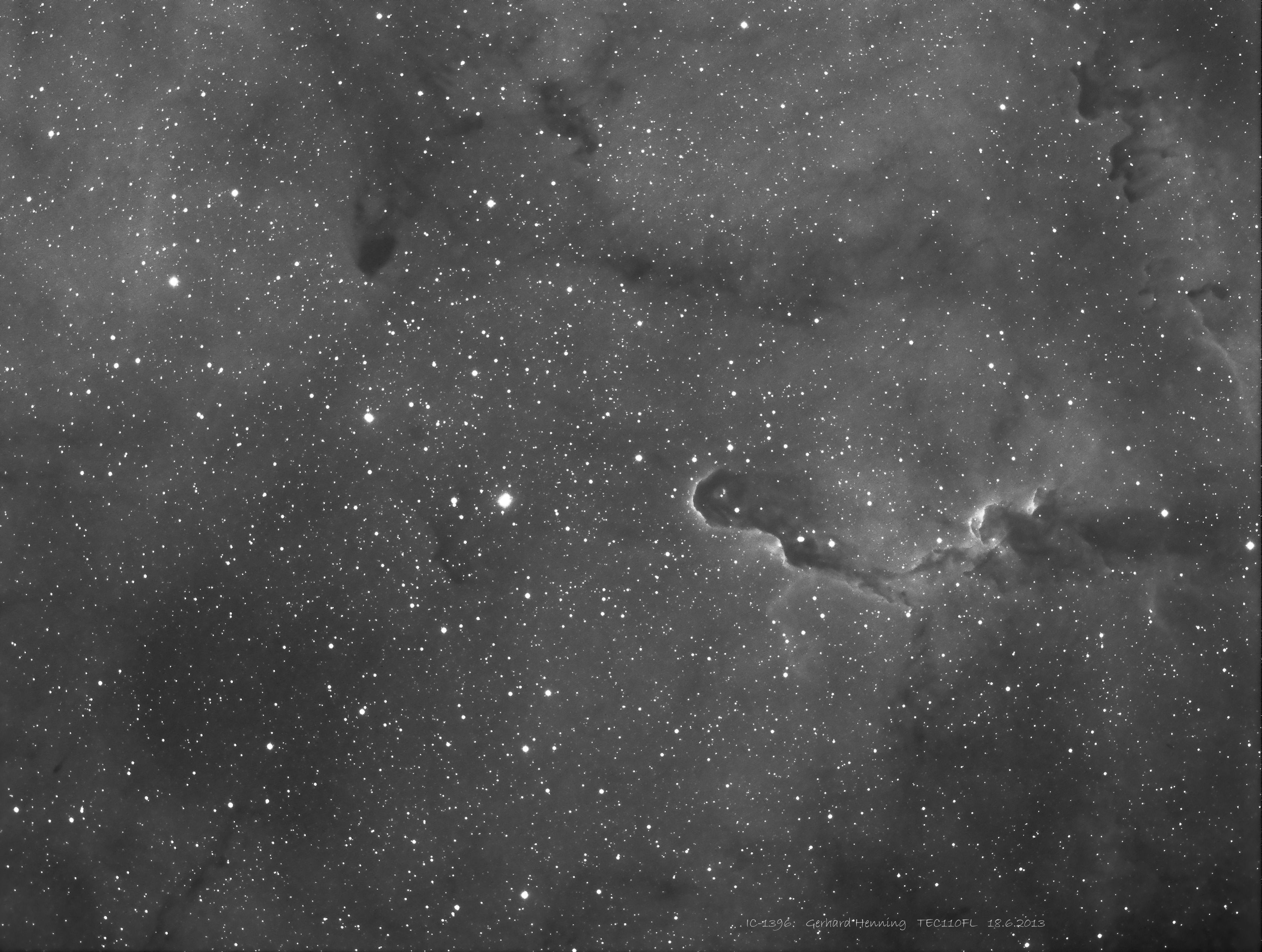 IC1396A ist eine Ansammlung von Staub und Gas und ist ca. 2400 Lichtjahre von uns entfernt.