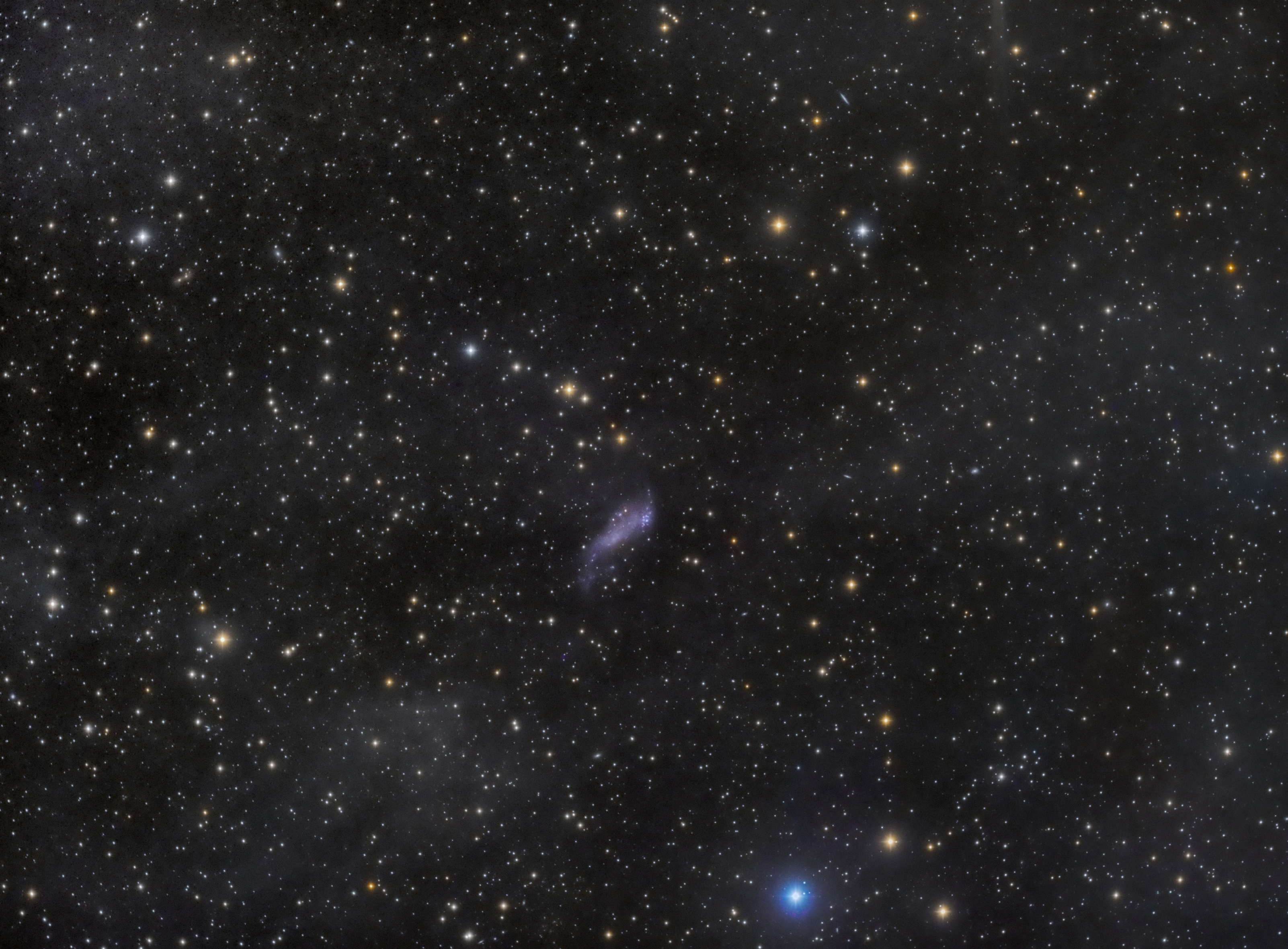 Dieses eher unbekannte Objekt nahe des Sternbilds "Großer Wagen" ist eine irreguläre Galaxie. Mein Ziel war es, unter meinem lichtverschmutzem Vorstadthimmel auch den IFN aus dem Hintergrund hervorzuholen.