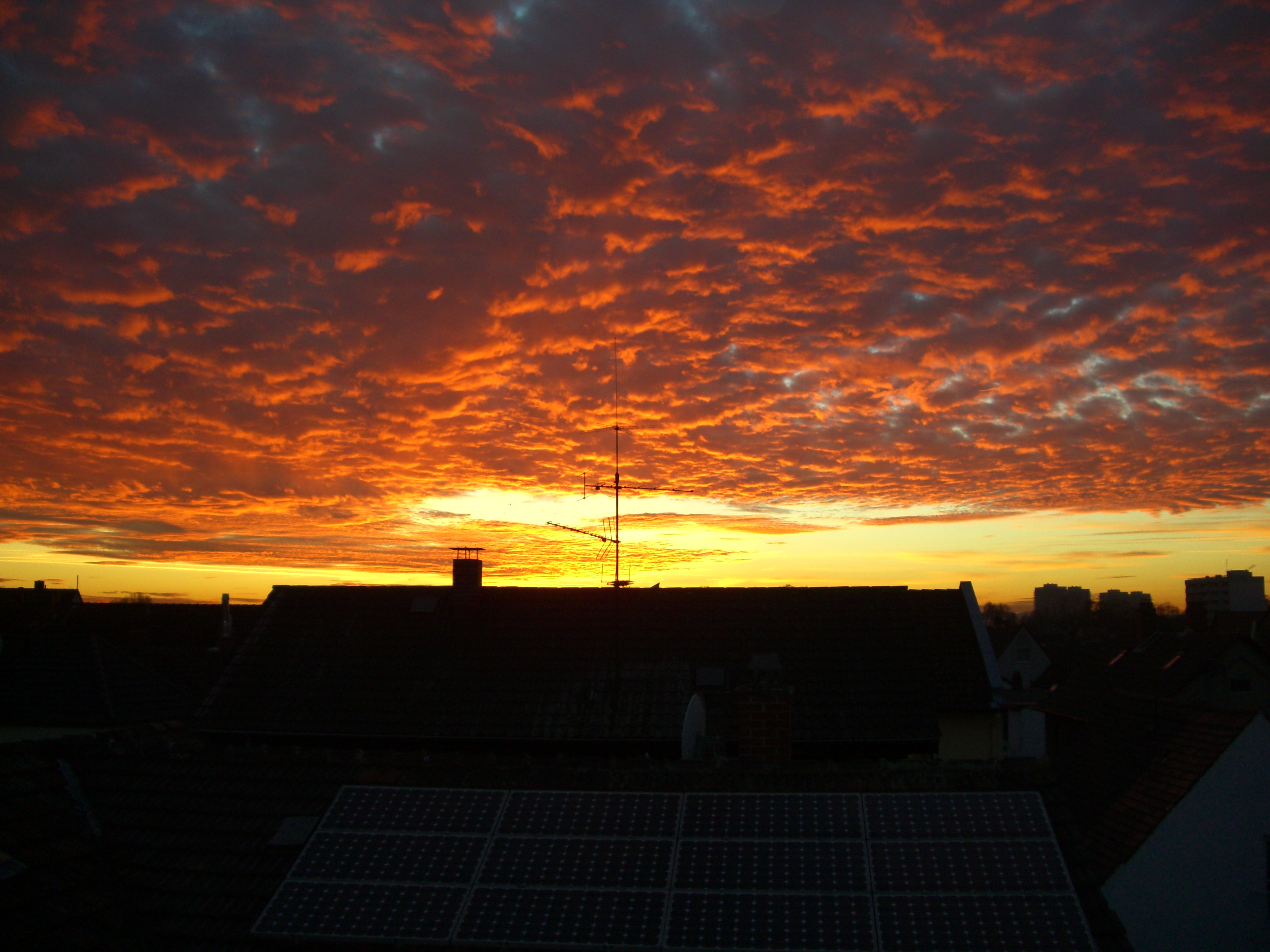 Kurz vor Sonnenuntergang bemerkte ich auffällige Wolkenstrukturen im Westen. Bei Sonnenuntergang gelang mir dieses Bild mit meiner Digitalkamera.