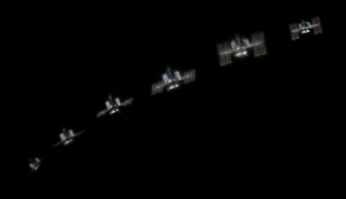 Aufgang der ISS: 20:11 Uhr MESZ, Untergang der ISS: 20:19 Uhr MESZ, max. Helligkeit -3,8 bei einer Höhe von 82°; Entfernung vom Beobachter: 426 km