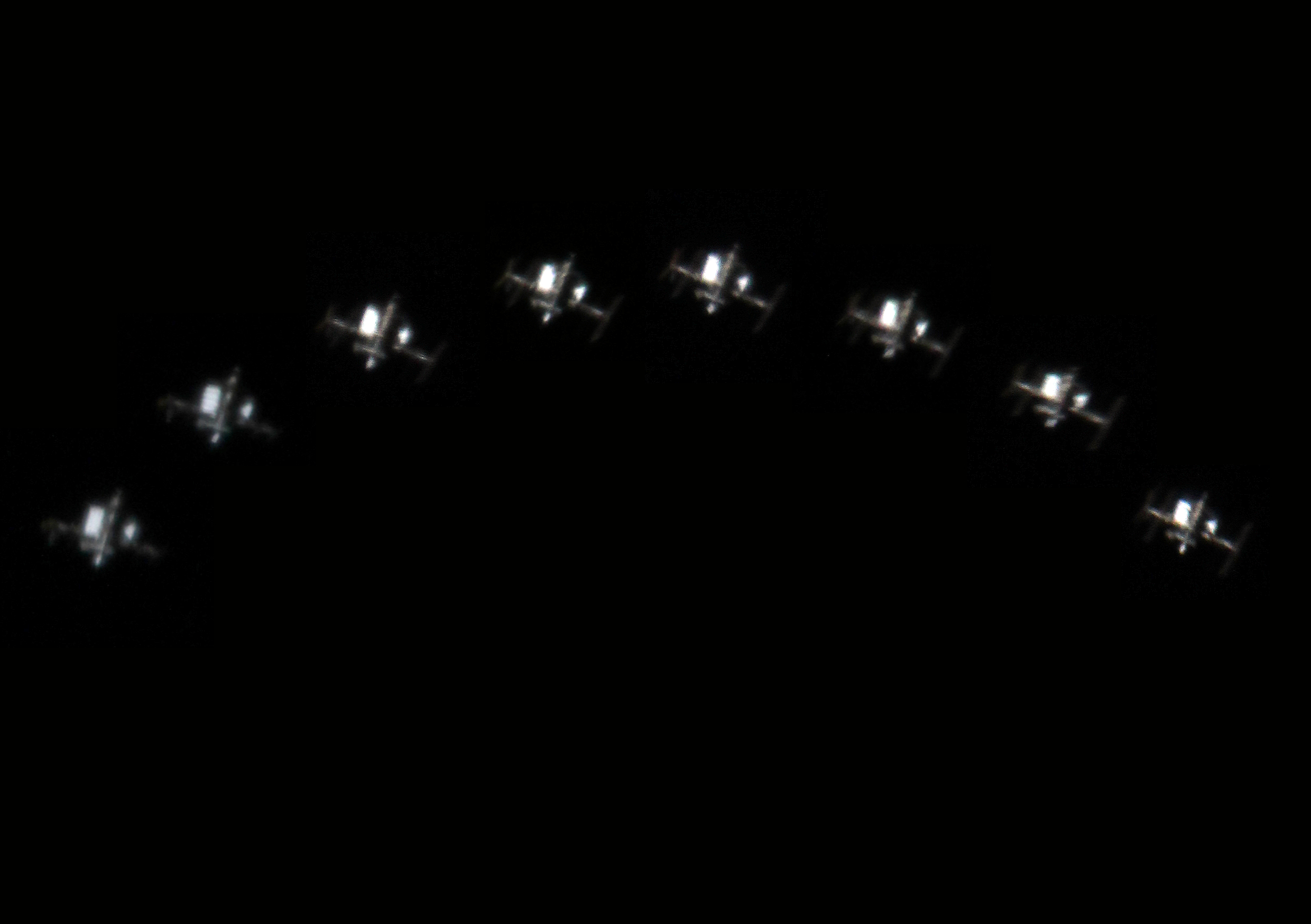 Fast im Zenit konnte ich einen wunderbaren Überflug der ISS auf mehrere Bildern festhalten. Gut zu erkennen sind die Crew Dragon und die neuen Solarsegel am Ausleger auf der linken Seite.