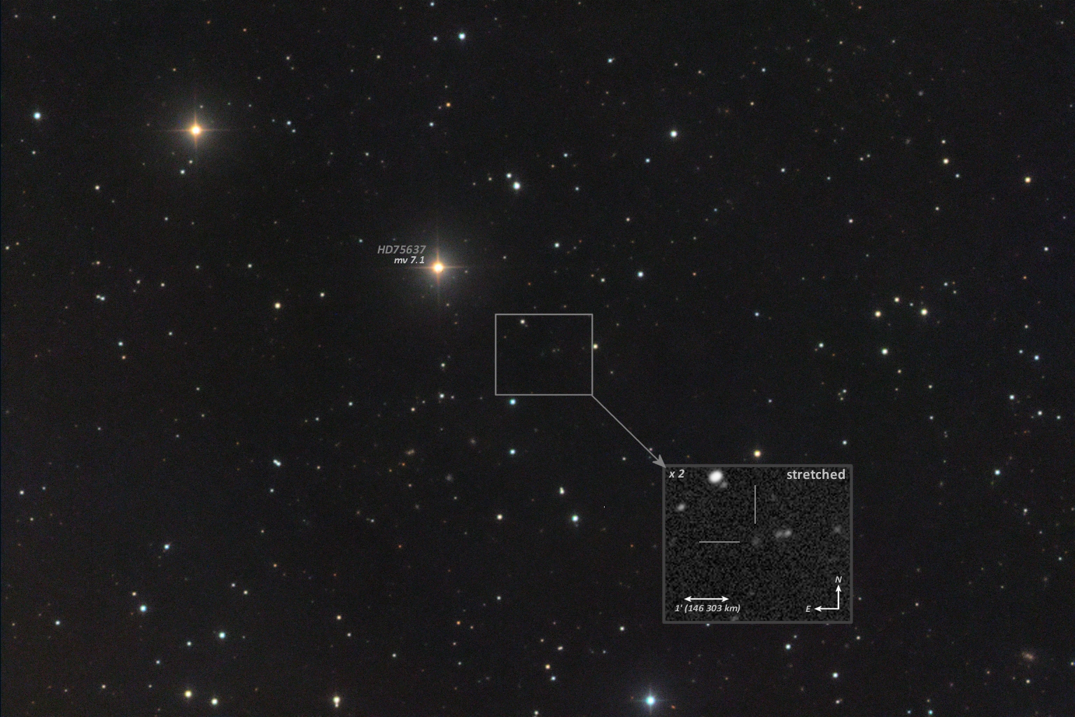 | Belichtungszeit | L = 3 x 120 bin2 + RGB = 1 x 60 bin2 |