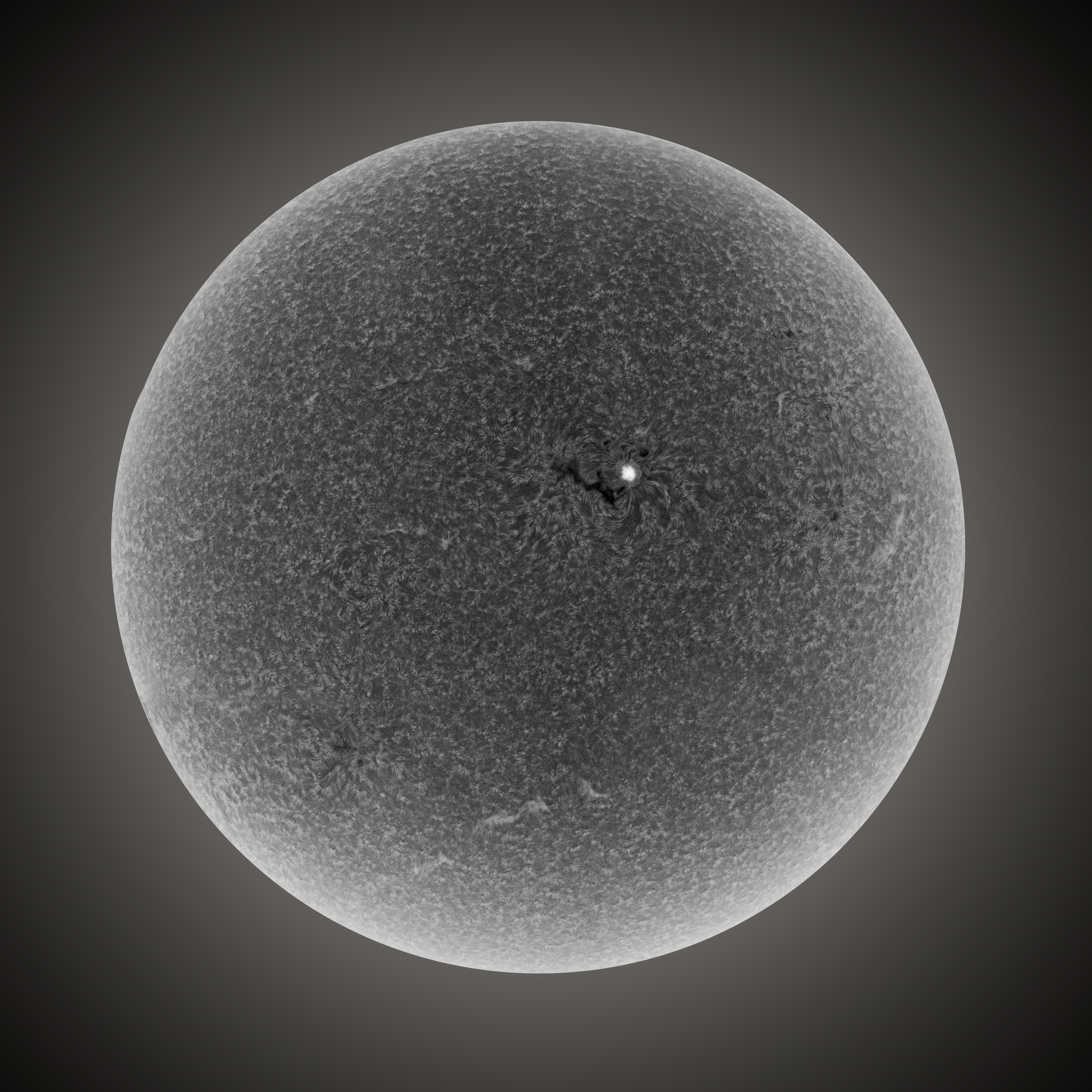 Dieses invertierte H-alpha-Sonnenmosaik fertigte ich am 21. Mai 2016 im Rahmen des Wahlfachs "Digitale Sonnenfotografie" gemeinsam mit fünf meiner astrobegeisterten Schüler an! Auch der Blick durch's Bino begeisterte an diesem Tag!