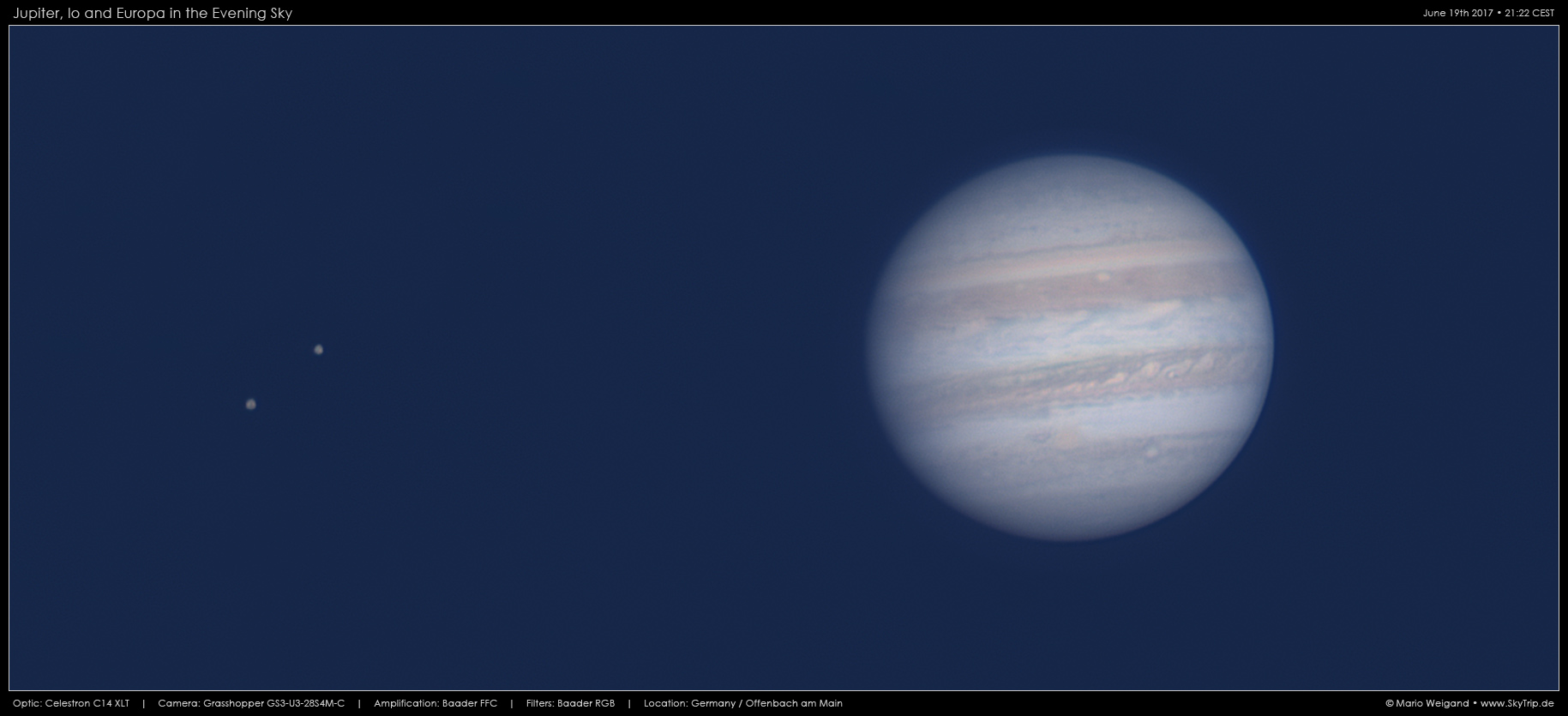 Leserbilder Astronomie: Io, Europa und Jupiter am Abendhimmel