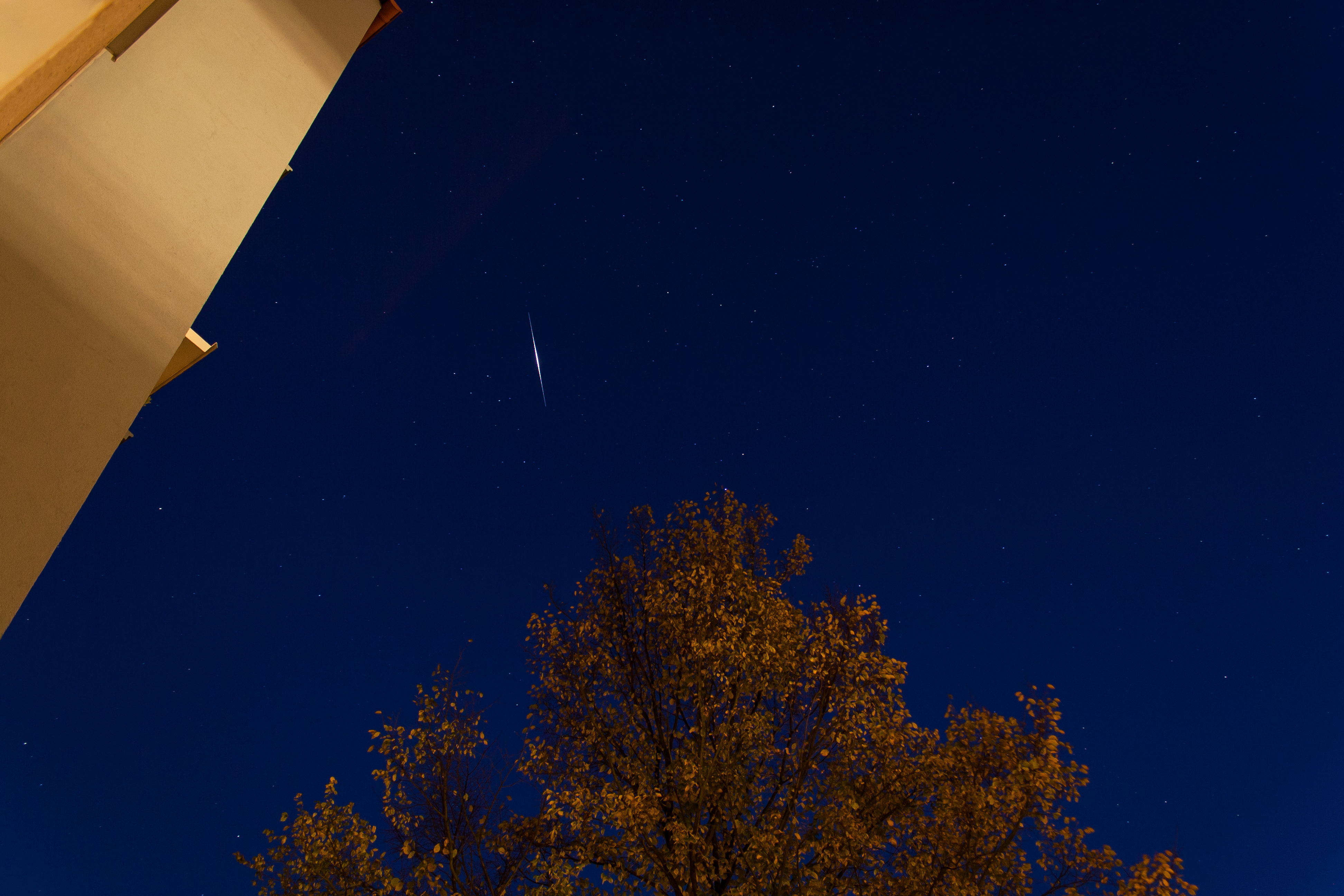 etwas älter … Iridium-Flare (Iridium 75) neben dem Sternbild Delphin am 11. Oktober 2015 um 19:23 Uhr. Flare von MMA1 (Rechte Antenne) Helligkeit: -6,0 mag