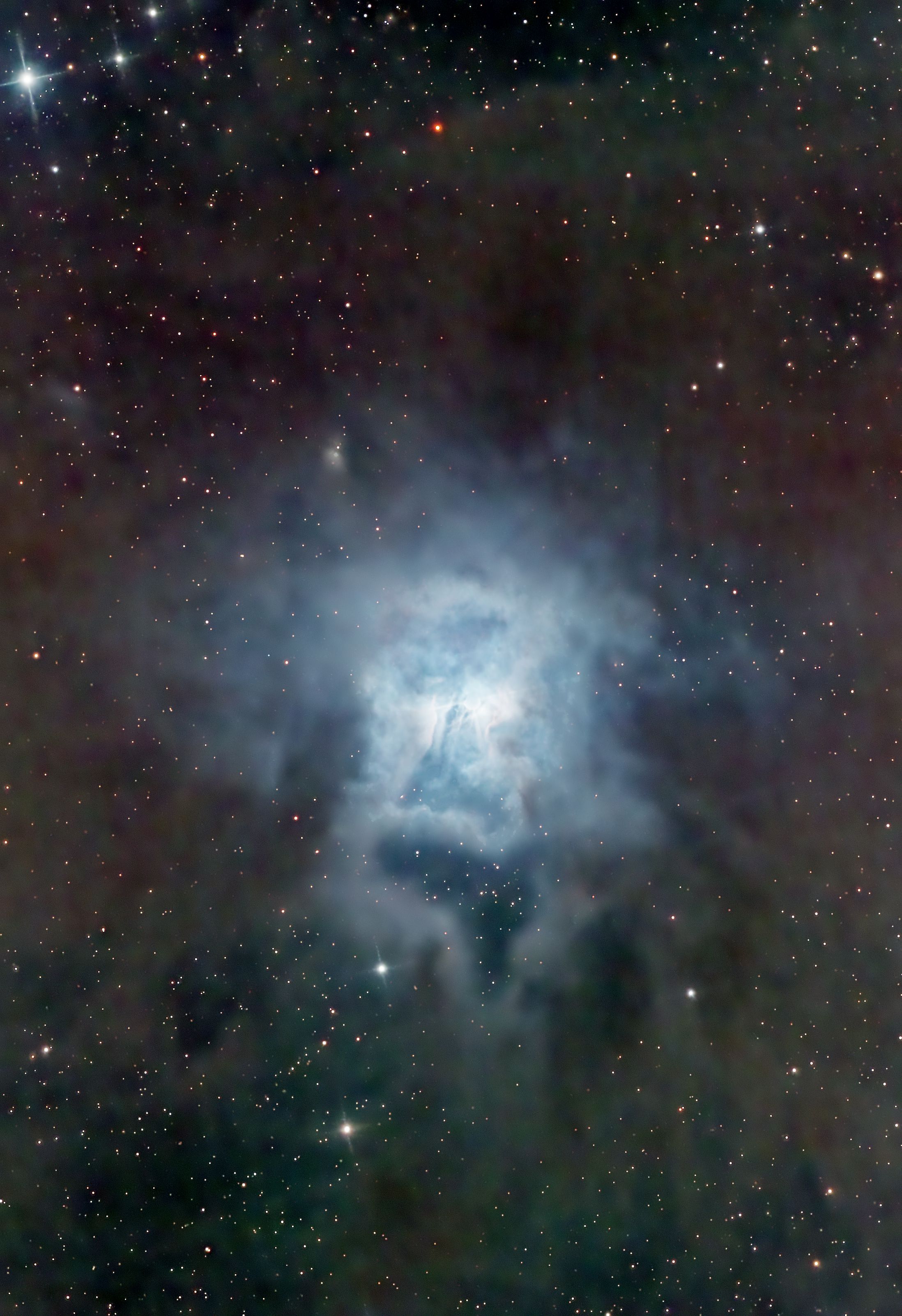 NGC 7023 (Irisnebel) ist ein etwa 1300 Lichtjahre entfernter Reflexionsnebel im Sternbild Kepheus, dessen feine Staubwolken von einem jungen B-Stern (HD 200775) energiereich angestrahlt werden. Durch die Streuung dieses energiereichen Lichts an den Staubpartikeln entsteht die charakteristische, blau leuchtende Erscheinung.