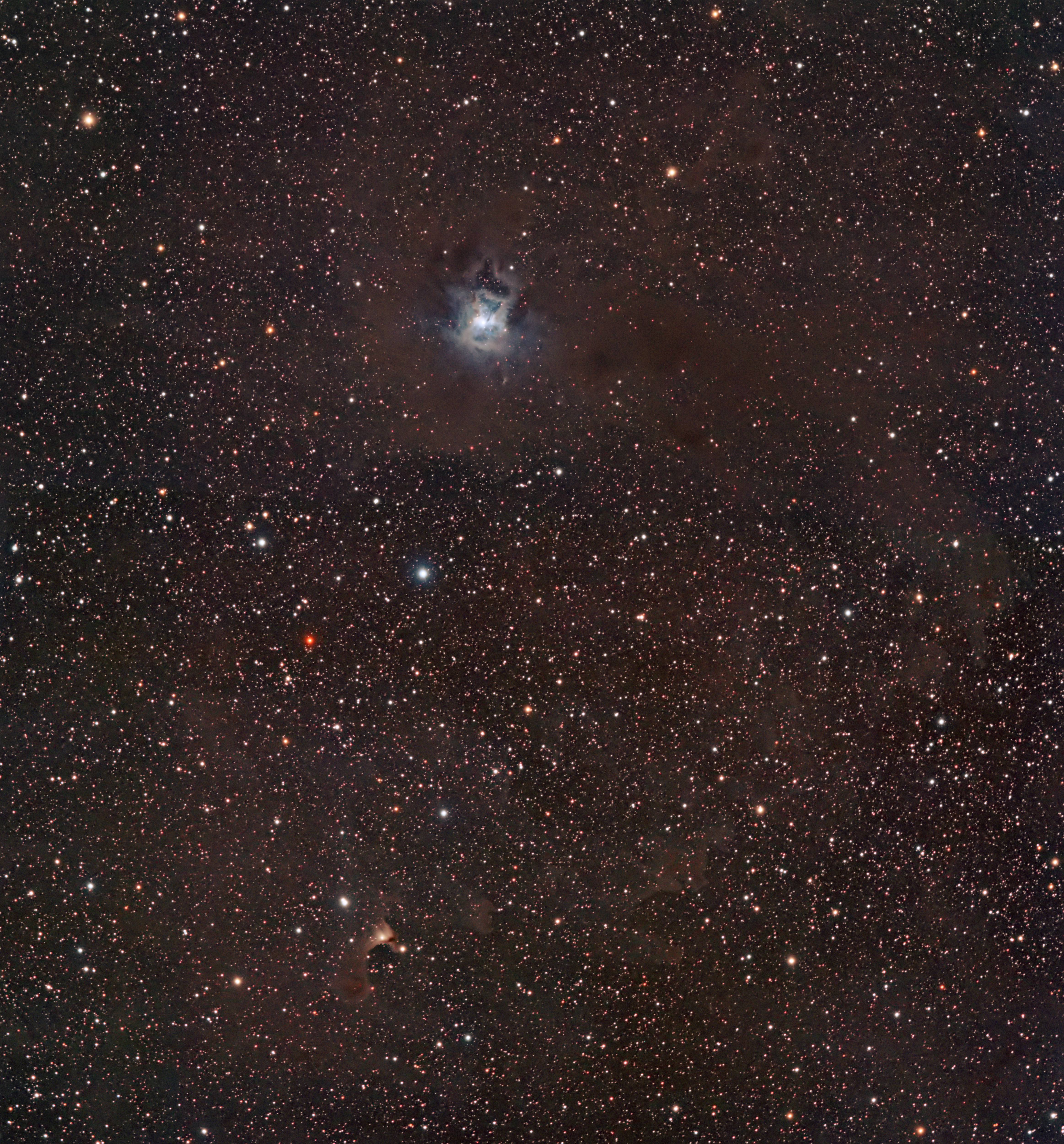 Belichtungen im goldenen Oktober 2018 vom 7. Oktober mit dem IRIS-Nebel NGC 7023 und vom 10. Oktober mit dem GHOST-Nebel CB 230, beide mit ISO 400.