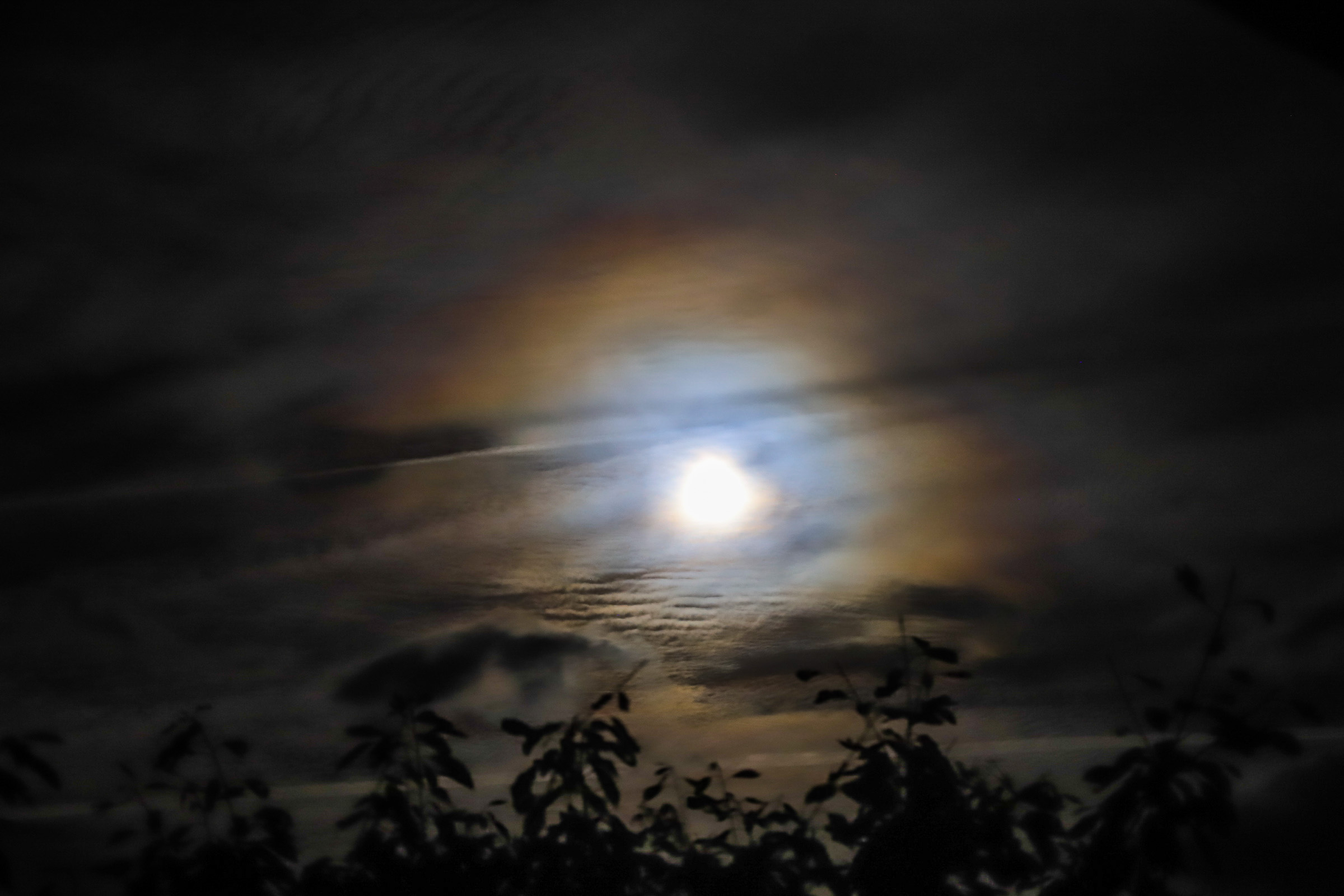 Schön zeigten sich die irisierenden Wolken bei Vollmond über der Insel Helgoland.