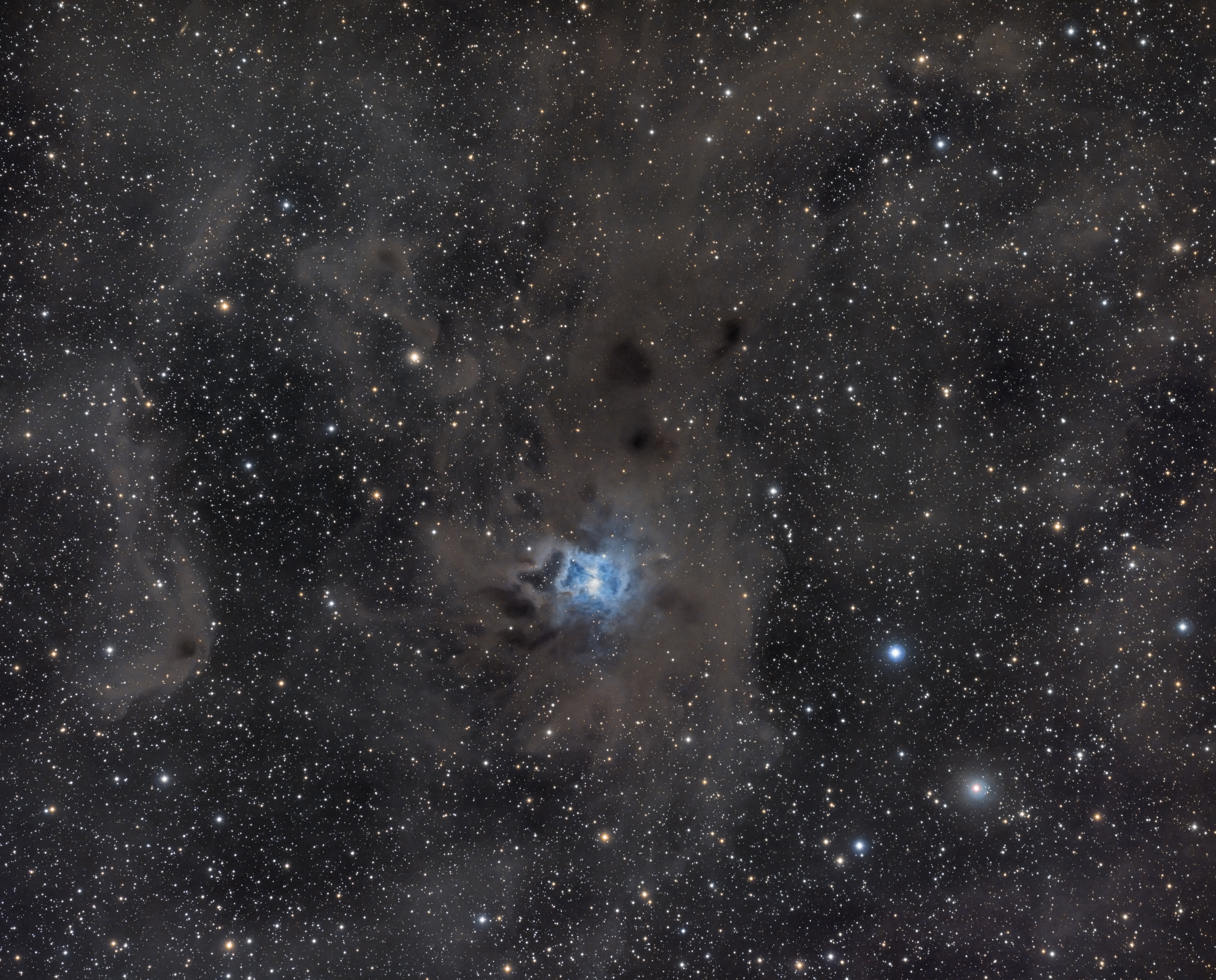 Ein wunderbares Objekt im Sternbild Kepheus ist der Irisnebel (NGC 7023). Erstmalig entdeckt wurde er von William Herschel im Jahr 1794. Auffällig bei diesem Objekt sind neben dem Reflexionsnebel die ihn umgebenden ausgedehnten Wolken aus interstellarem Staub.
