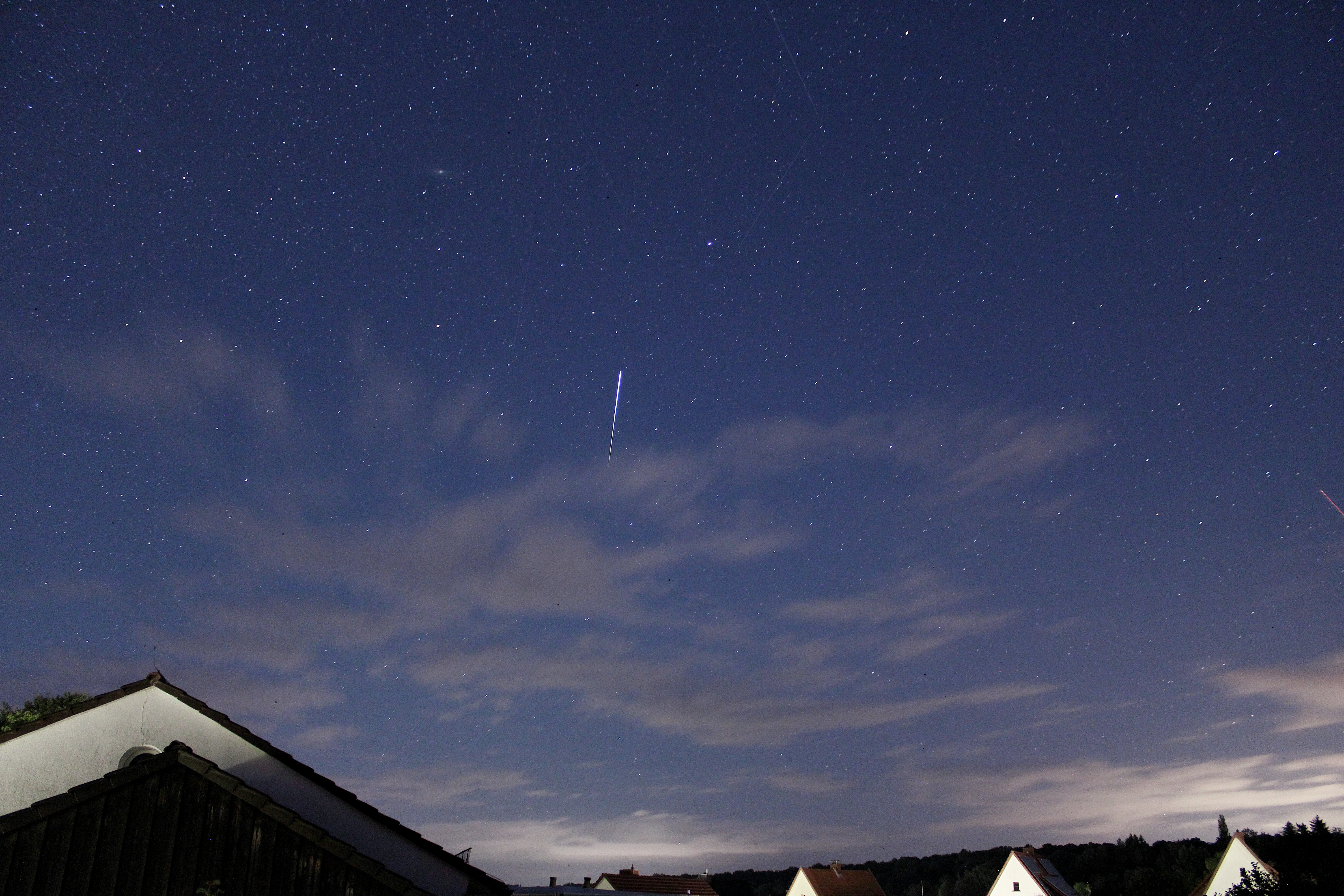 ISS am Abendhimmel von meiner Balkonsternwarte fotografiert. Ich hatte sie gerade noch erwischt.
