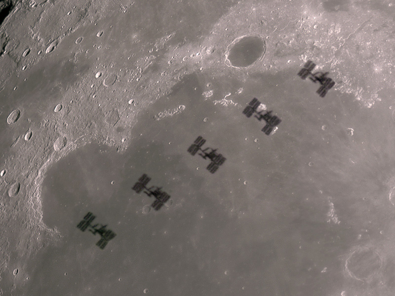 Am 12. Februar 2014 gab es hier in Landsberg ein sehr seltenes Ereignis: ein ISS-Mondtransit direkt auf der Zentrallinie bei gleichzeitig gutem Wetter. Am Ende war es ein Wettlauf gegen die Wolken, da eine halbe Stunde vor dem Ereignis erste hohe Wolken einer herannahenden Front dem ganzen Spektakel ein Ende zu setzen drohten. Kurz vor dem Transit dann eine Wolkenlücke: manchmal braucht man bei diesem Hobby auch Glück …