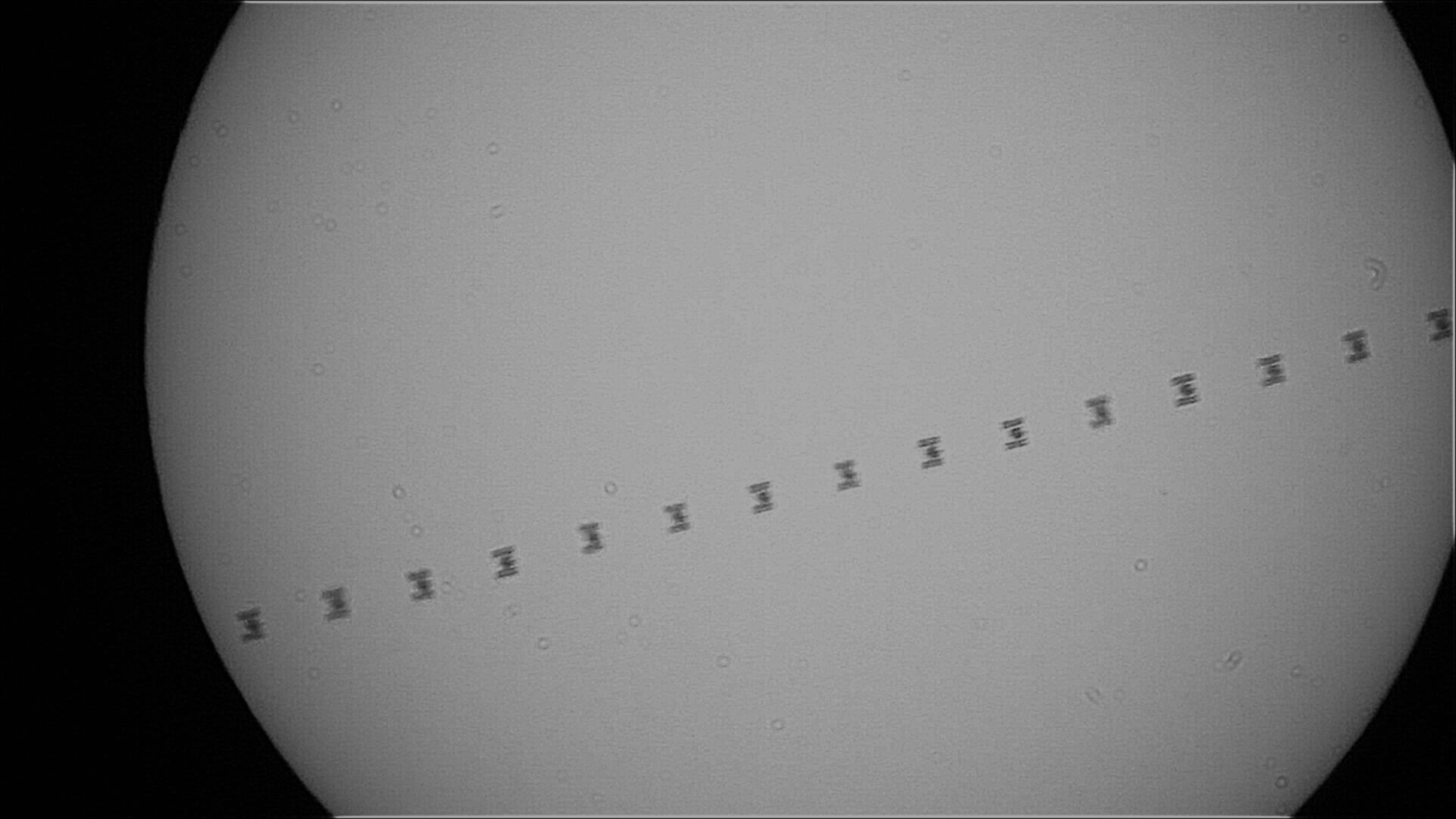 Nach längerem Warten konnte ich endlich mal wieder einen ISS-Sonnentransit fotorafieren. Zentrallinie war Rafz in Richtung Winterthur. Bei Buch am Irchel legte ich mich auf die Lauer. Der Transit dauerte nur 0,49 Sekunden.