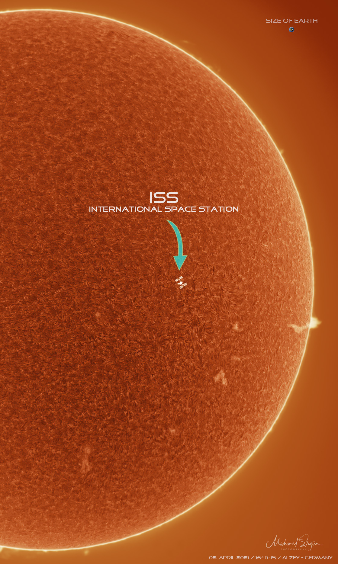 Heute (02.04.2021) war es wieder so weit, ich durfte wieder Zeuge eines ISS-Transits werden. Die Aufnahme habe ich vor rund drei Wochen geplant und mit bissel Glück konnte ich es heute Mittag um 16:41 Uhr fotografisch einfangen. Das hier ist mein 4x ISS-Transit-Foto, und ich bin jedes Mal fasziniert und aufgeregt zugleich
