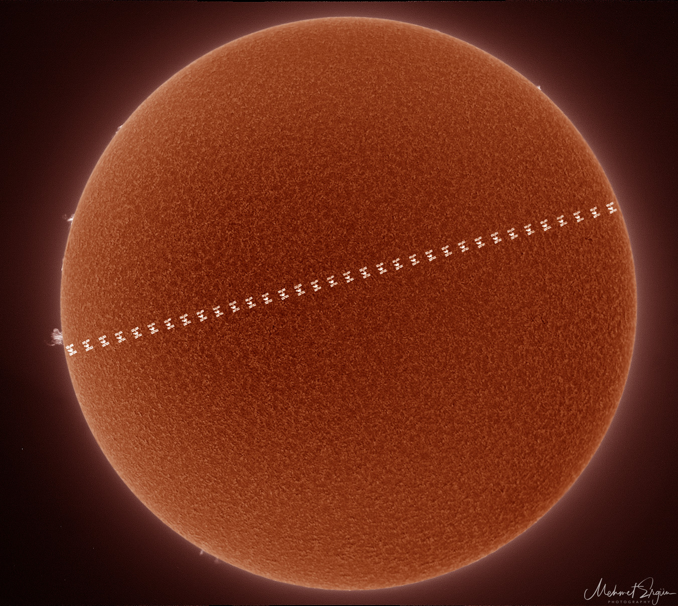 Leserbilder Astronomie: ISS Transit - Sonne in H-Alpha