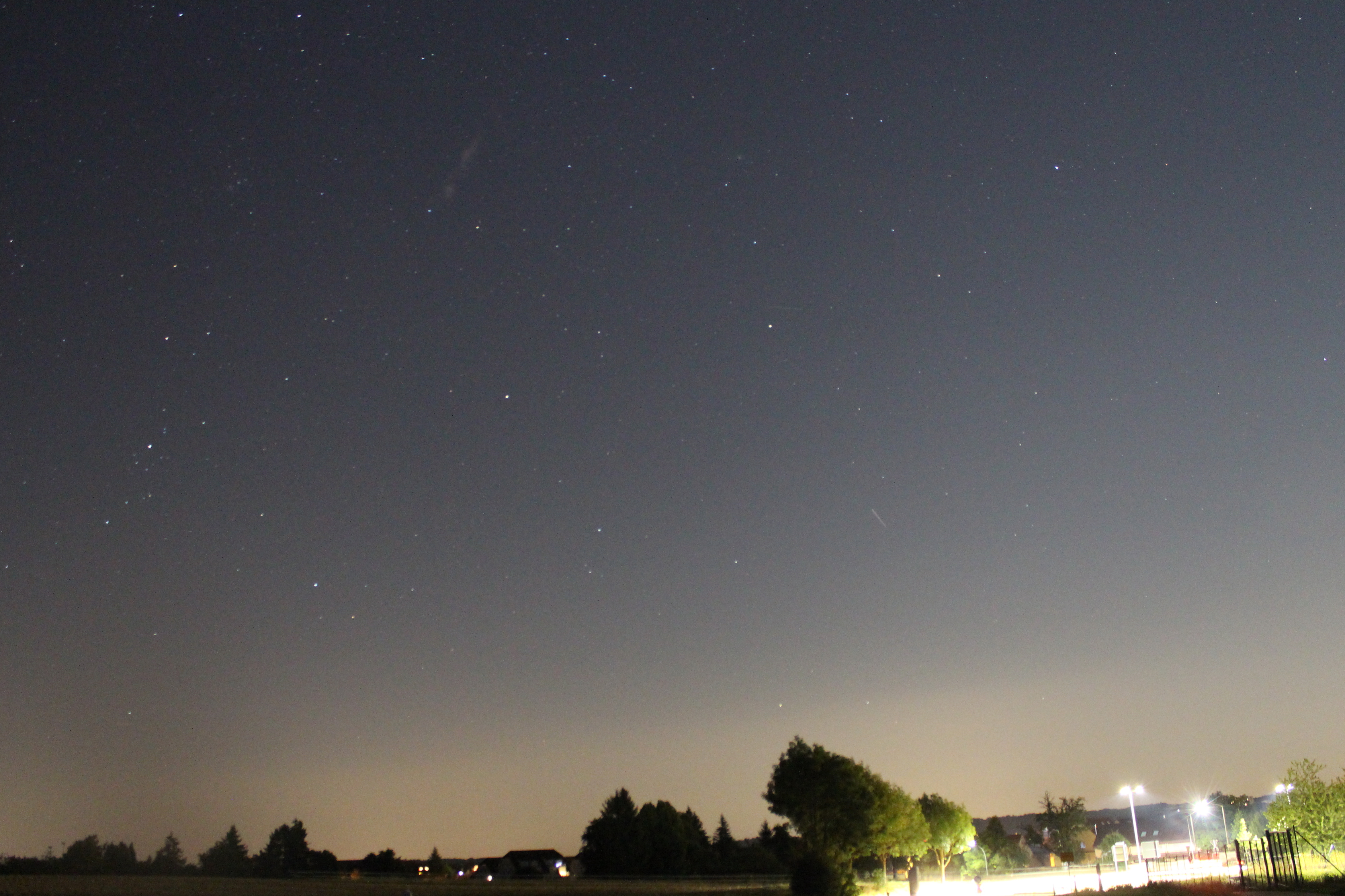 Die ISS tritt in den Erdschatten ein und erscheint viel schwächer als auf den vorherigen Bild.