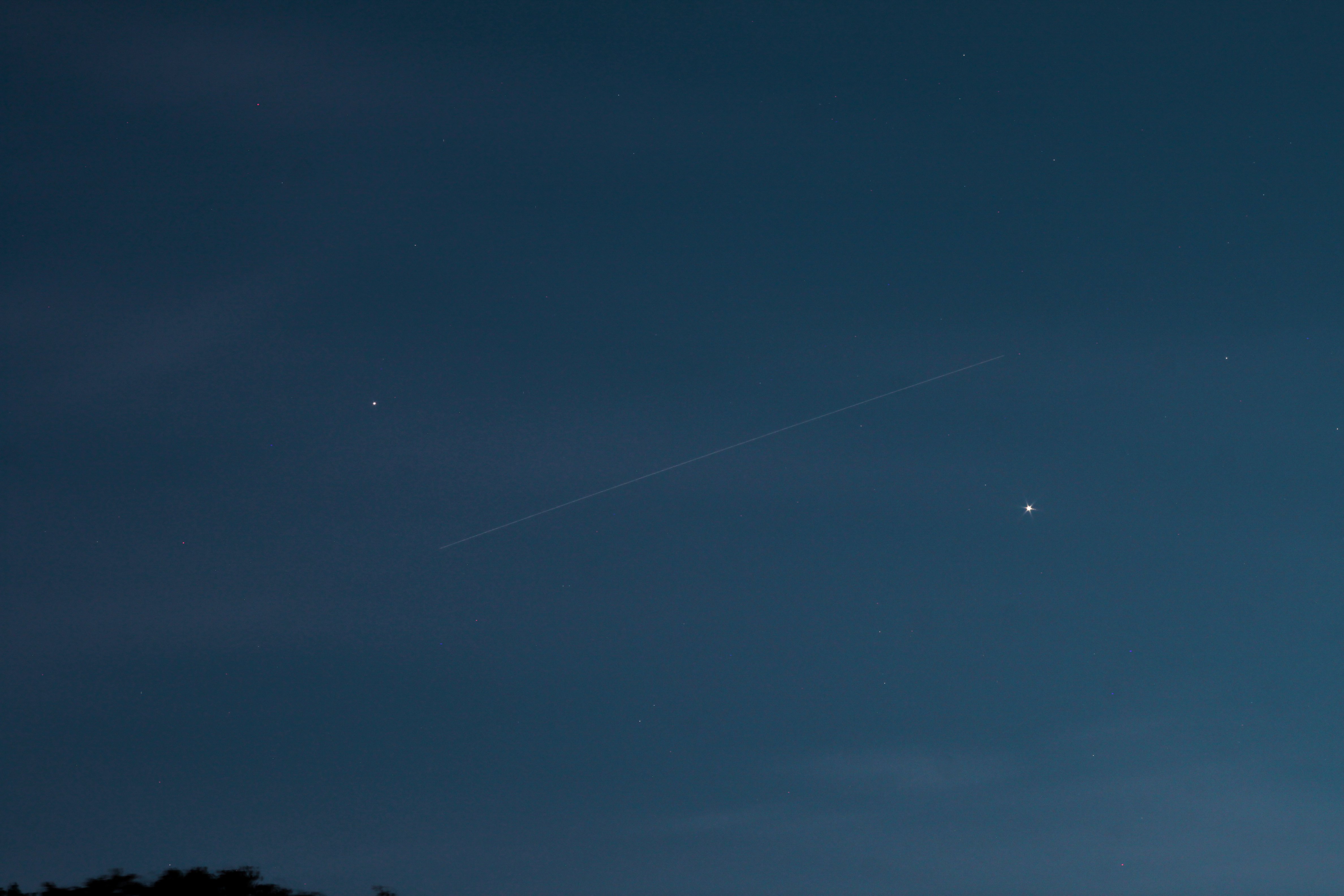 Am Mittwoch, dem 7. Oktober um 19:39 Uhr, flog die Internationale Raumstation optisch gesehen zwischen Jupiter und Saturn hindurch. Ein seltener Anblick