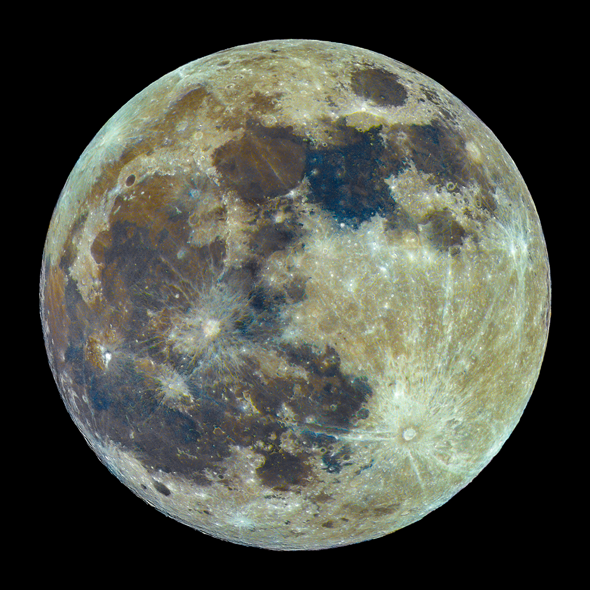 Für das menschliche Auge erscheint der Mond am Nachthimmel nahezu farblos. Der Mond hat aber verschiedenfarbige Gesteinsformationen, die man fotografisch sichtbar machen kann. Bereits 1972 entdeckte der Geologe und Apollo 17 Astronaut Harrison Schmitt orangefarbenes Mondgestein. Seine Worte "It's orange!" gingen in die Geschichte ein. Inspiriert durch die Werke anderer Fotografen habe ich ebenfalls versucht die Mondoberfläche farbig abzubilden. Der Supervollmond am Abend vor der totalen Mondfinsternis bot eine gute Gelegenheit dafür.