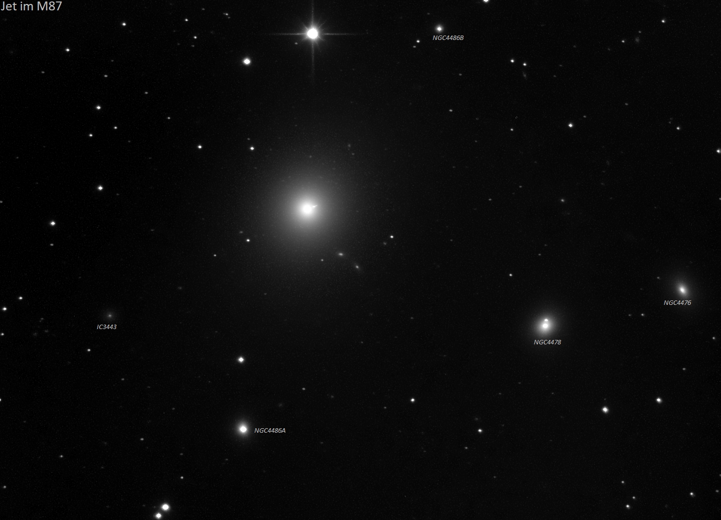 Entdeckt wurde er 1918 von Heber D. Curtis mit dem 36-Zoll-Crossley-Reflektor am Lick-Observatorium auf dem Mt. Hamilton, CA. Seine scheinbare Länge beträgt 20 Bogensekunden bei 2 Bogensekunden Breite beim Positionswinkel von 260 Grad. Dies entspricht einer wahren Ausdehnung von etwa 4900 Lichtjahren. Der Plasmajet bewegt sich dabei mit relativistischer Geschwindigkeit radial nach außen.