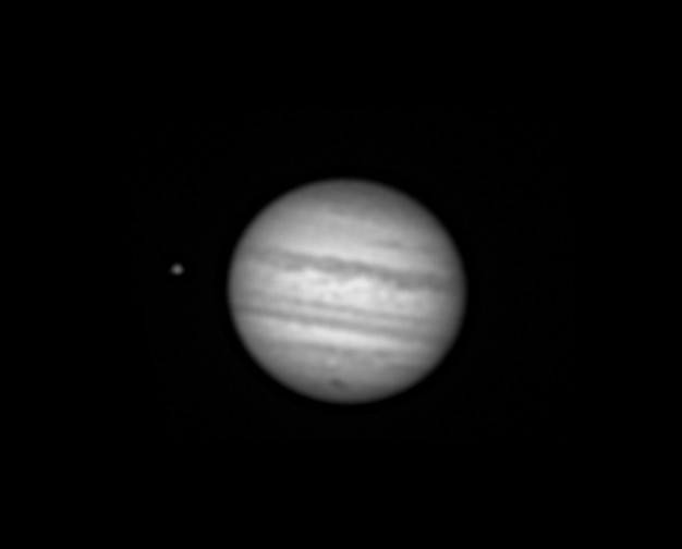 Jupiter mit Einschlagsregion. 350 von 900 Bilder mit Registax addiert. Astronomik Rotfilter