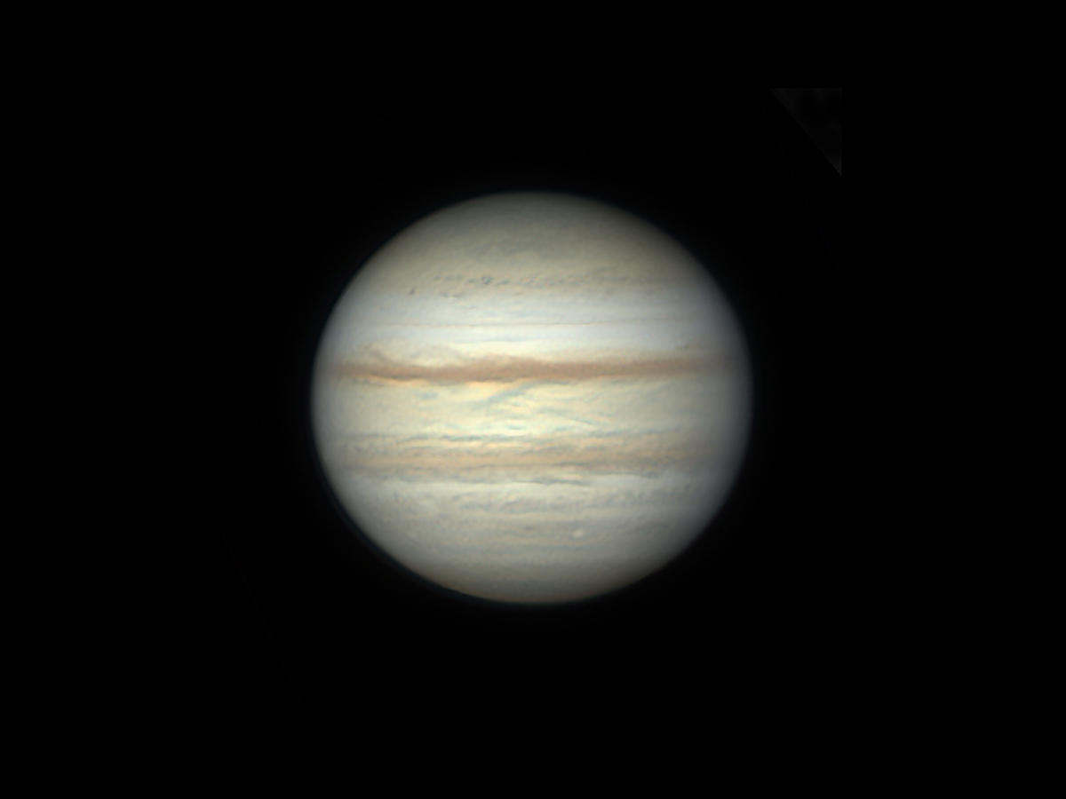 Am Morgen des 11. August war unerwartet gutes Seeing und schon visuell war mit vielen Details im Okular zu beobachten. Zwar zeigte Jupiter seine mehr "langweilige" Seite, das heißt, der Große Rote Fleck war nicht zu sehen. Aber ich nahm dennoch die Kamera zur Hand, um ihn abzulichten. Das Gesamtergebnis zeigte mir feinste Details, die ich bislang noch nicht mit einem 20-cm-Teleskop ablichten konnte.