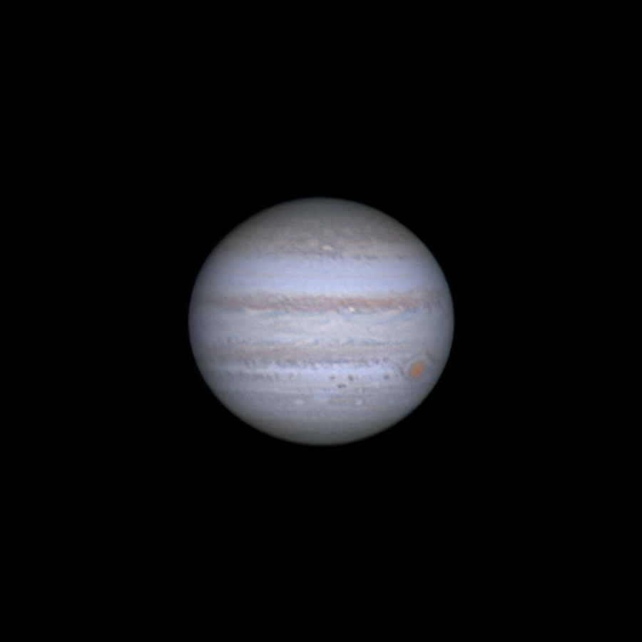 Jupiter hat schon seine Opposition hinter sich und nimmt von seiner Größe her ab. Am 17. Oktober 2022 gab es Gelegenheit, bei ruhiger Luft den Gasriesen zu fotografieren. Mit Hilfe eines ADC konnte die atmosphärische Dispersion ausgeglichen und eine schärferes Bild erreicht werden. Viel besser wird es mit 180 mm Öffnung kaum mehr möglich sein von meinem Standort aus Jupiter ins Bild zu bringen.
