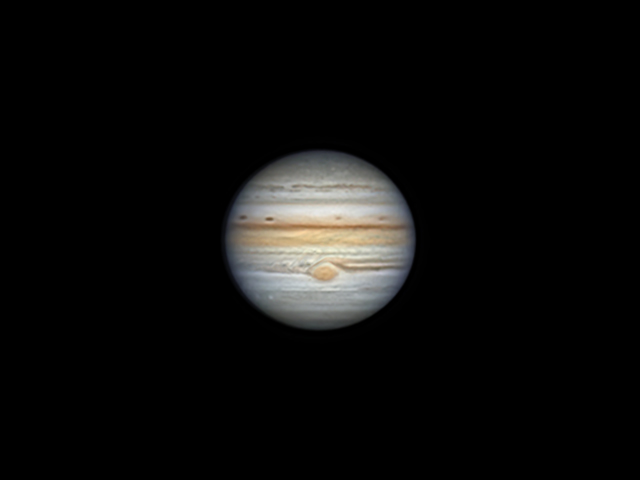 Dieser schöne Jupiter war eine Überraschung. Das Seeing war eigentlich schlecht (sehr pulsierend). Dennoch habe ich wegen des "Großen Roten Flecks" eine Stunde lang etliche Clips aufgenommen, aber dann nicht einmal mehr angeschaut. Heute habe ich zwei erstaunlich gute Sequenzen gefunden. Nur ein paar Sekunden lang, aber das genügt schon.
