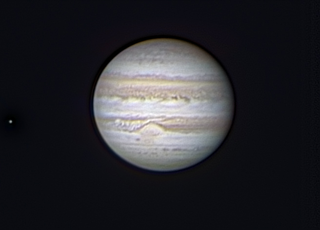 Am Morgenhimmel des 7. September stand Jupiter sehr ruhig im Okular. Der Anblick ermutigte mich zu einer Aufnahme mit parallel ausgerichteten Teleskopen. Durch ein 10"-Newton entstand der L-Kanal und an einem 7"-Meniscas nahm ich gleichzeitig mit einer Webcam das RGB Bild auf. Das Ergebnis ist das beste Jupiterbild, das mir bislang gelang.