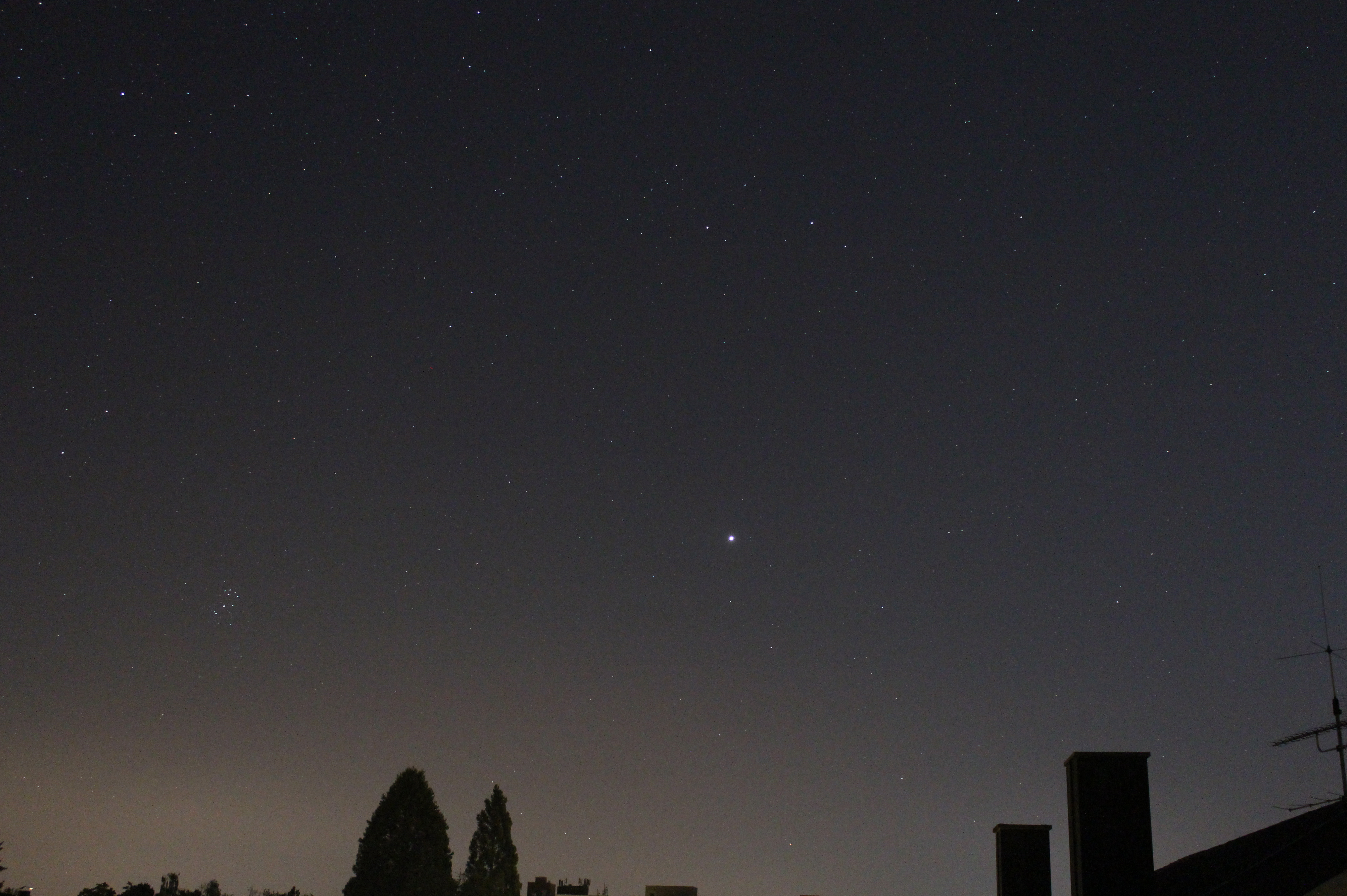 Jupiter im Sternbild Widder über dem Sindelfinger Ortsteil Maichingen.