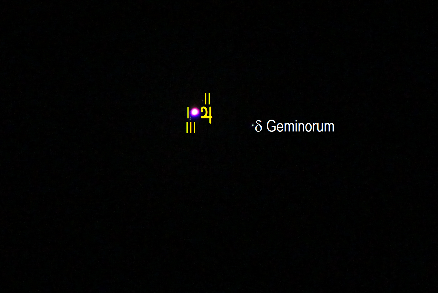 Leserbilder Astronomie: Jupiter bei Delta Geminorum (Objekte beschriftet)