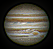 Ein erster Versuch der Planetenfotografie gelang mir am 19. November 2012. Zufälligerweise habe ich gerade den Großen Roten Fleck (GRF) erwischt.
