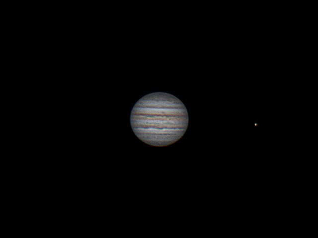 Die Nacht von 14. auf 15. August 2021 zeichnete sich durch ein exzellentes Seeing aus. So ist es mir gelungen, mit einfachsten Mitteln, nämlich einem 30 Jahre alten Celestron C8 auf einer 25 Jahre alten Vixen GP-DX Montierung ein sehr ansprechendes Bild von Jupiter und Io zu machen. Dieses Bild habe ich aus zehn Prozent von 5000 Teilbildern mit einer ASI224 Kamera aufaddiert. Das Bild wurde sonst nicht mehr nachbearbeitet.