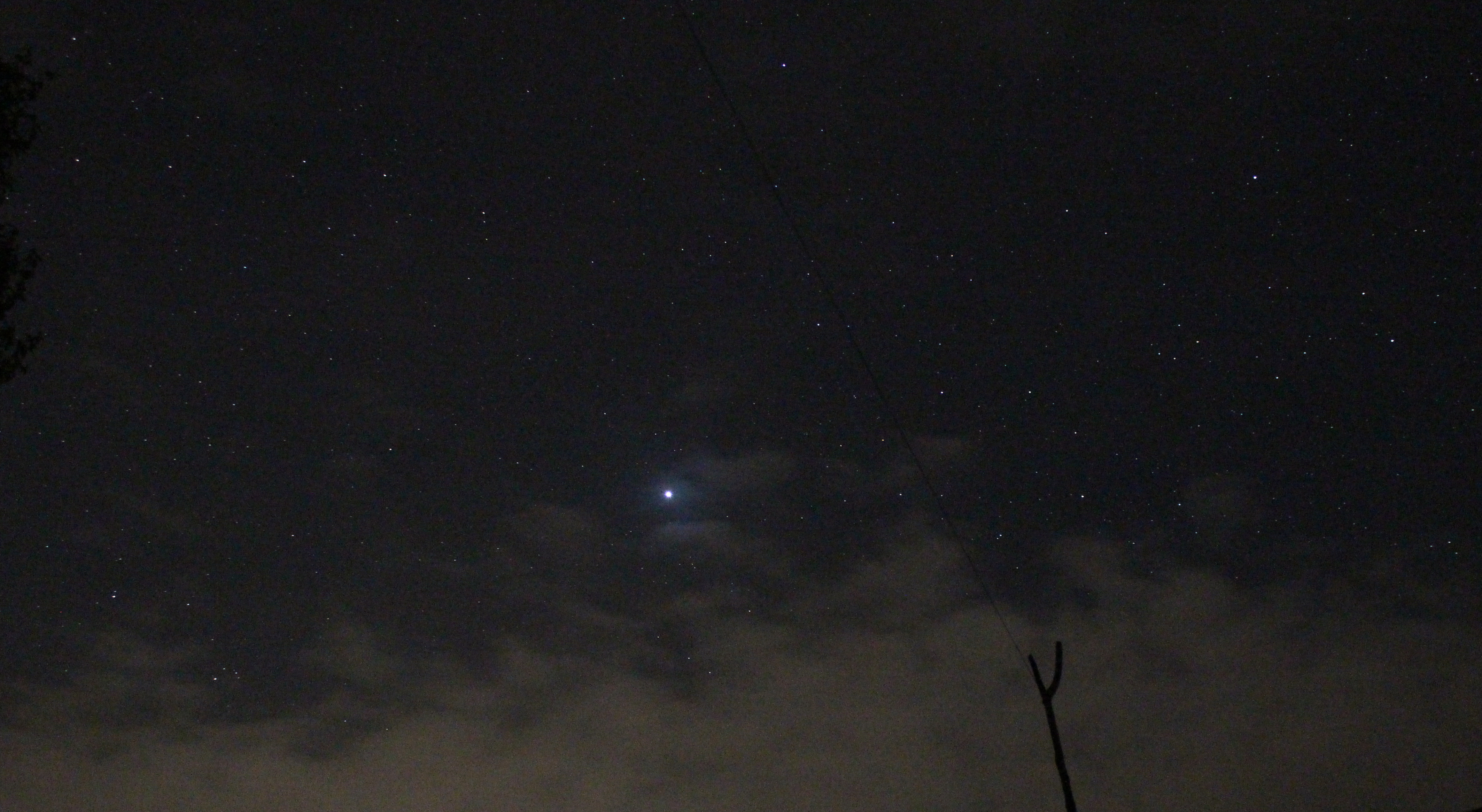 Jupiter im Sternbild Fische bei aufziehenden Wolken über Wollbach (Unterfranken).