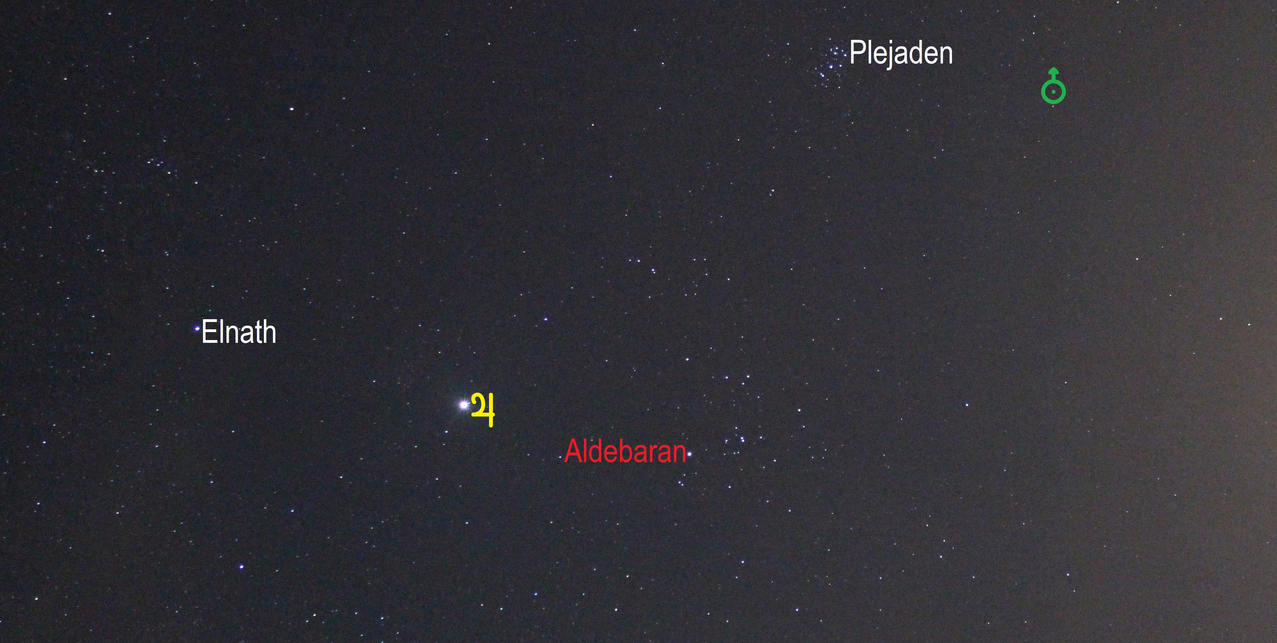 Leserbilder Astronomie: Jupiter im Sternbild Stier (Objekte beschriftet)