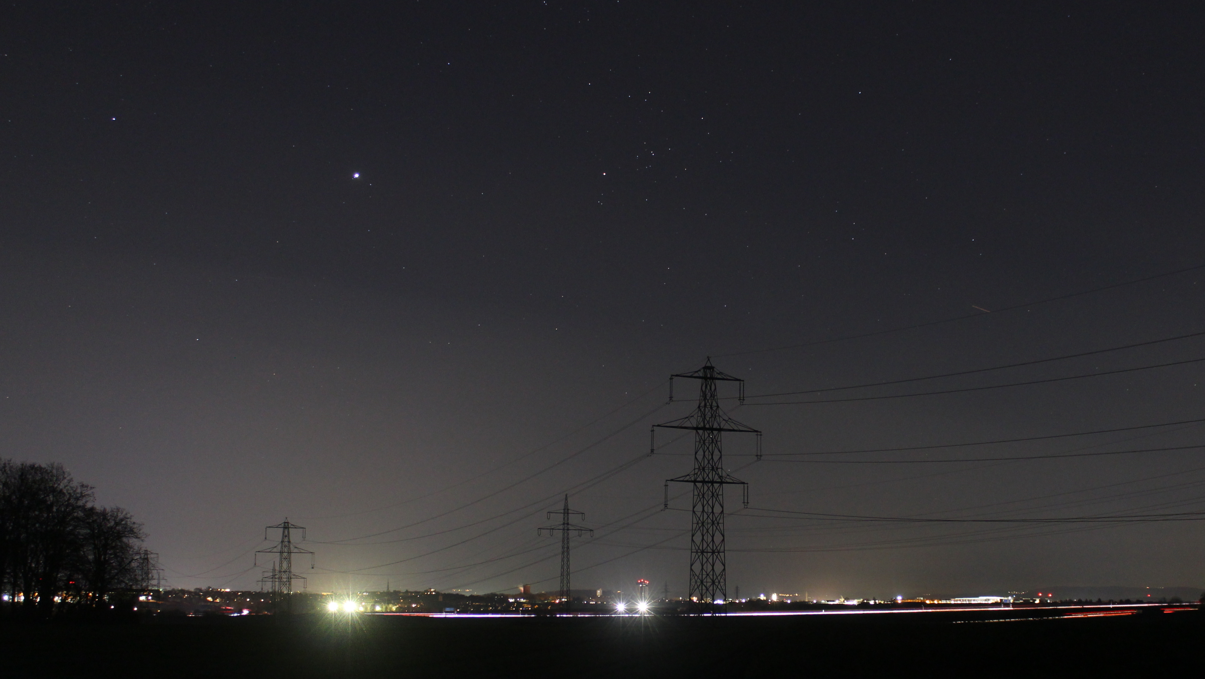 Jupiter im Sternbild Stier über dem Nordosthorizont, aufgenommen östlich von Schwieberdingen