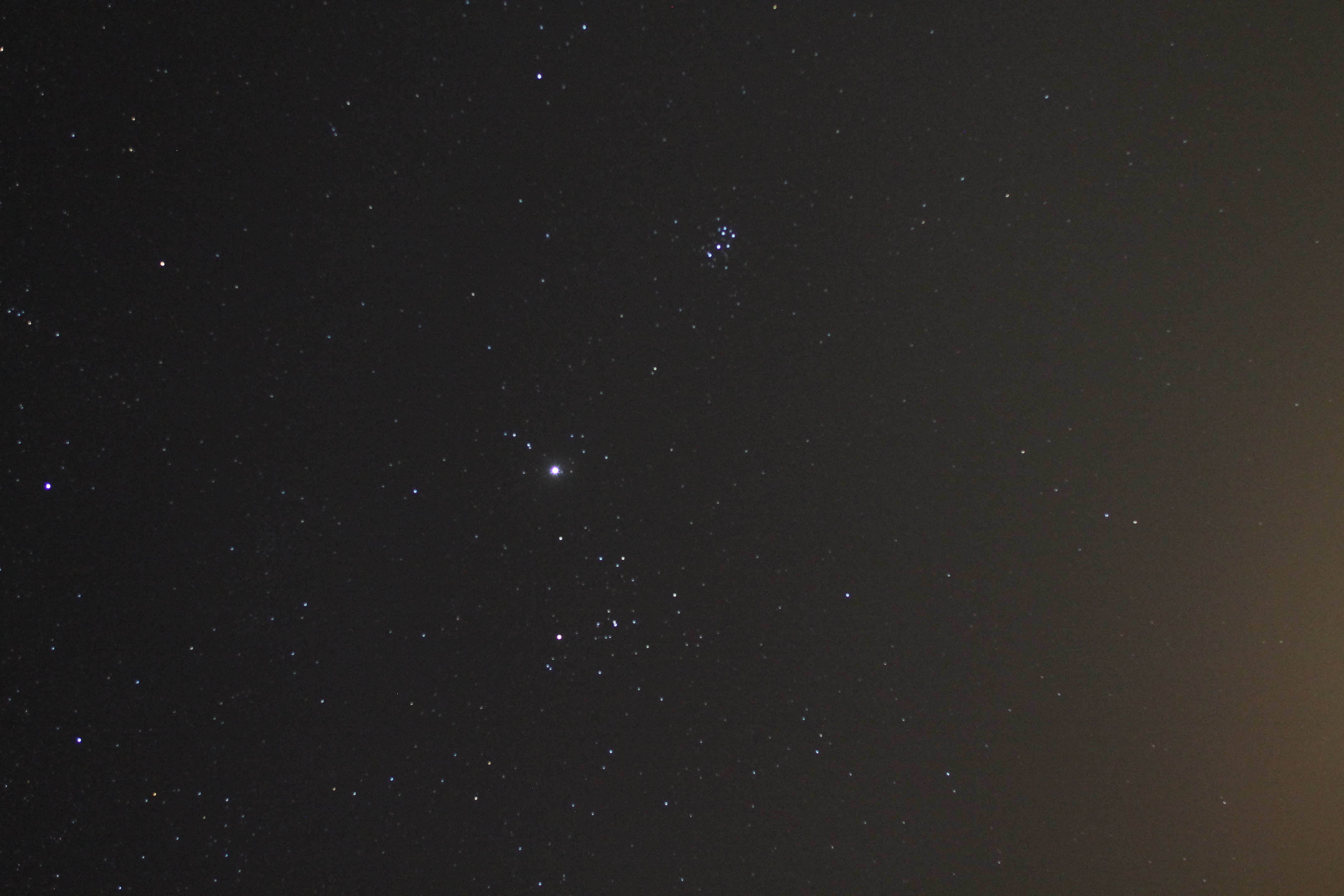 Nach zahlreichen trüben Nächten konnte ich am 2. März 2013 endlich wieder den gestirnten Himmel sehen, was ich für ein Bild vom Sternbild Stier mit dem Planeten Jupiter nutzte.