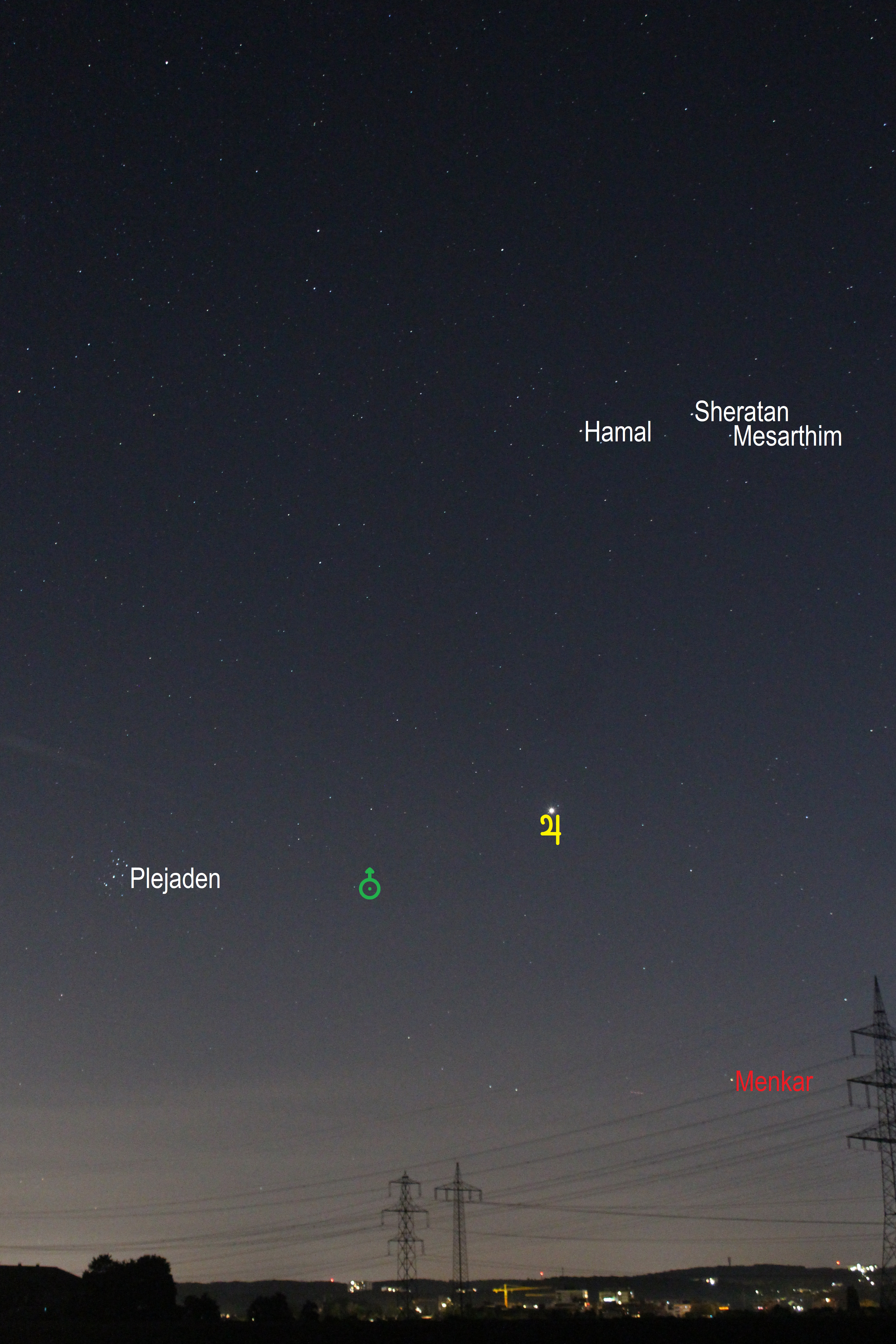 Jupiter im Sternbild Widder über dem Sindelfinger Ortsteil Maichingen.