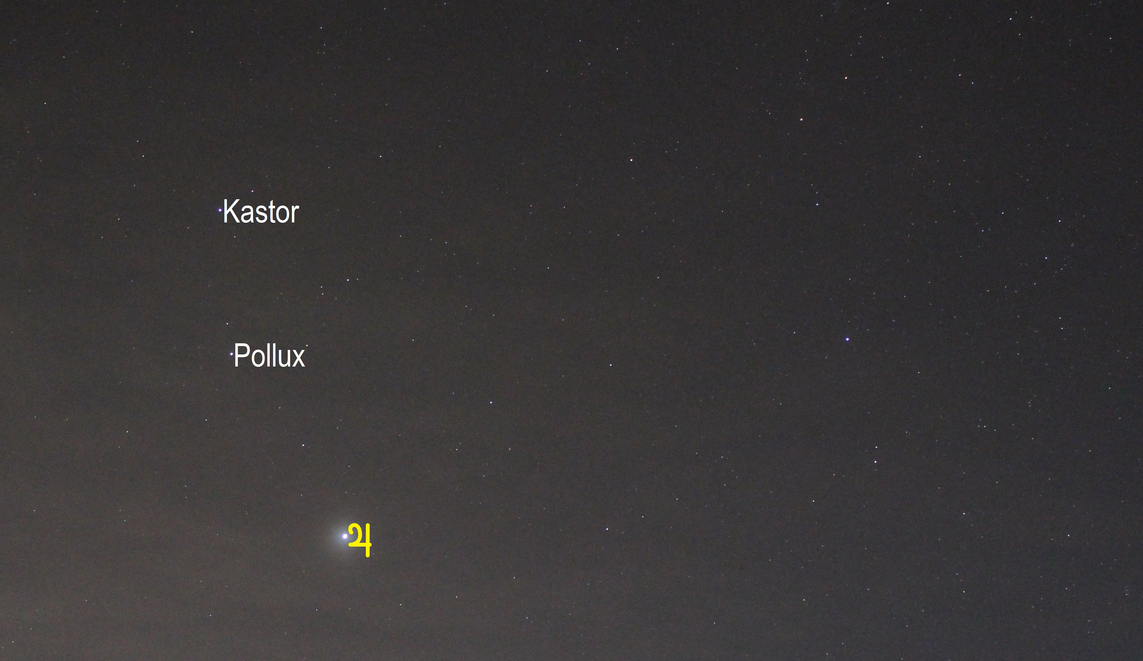 Leserbilder Astronomie: Jupiter im Sternbild Zwillinge (Objekte beschriftet)