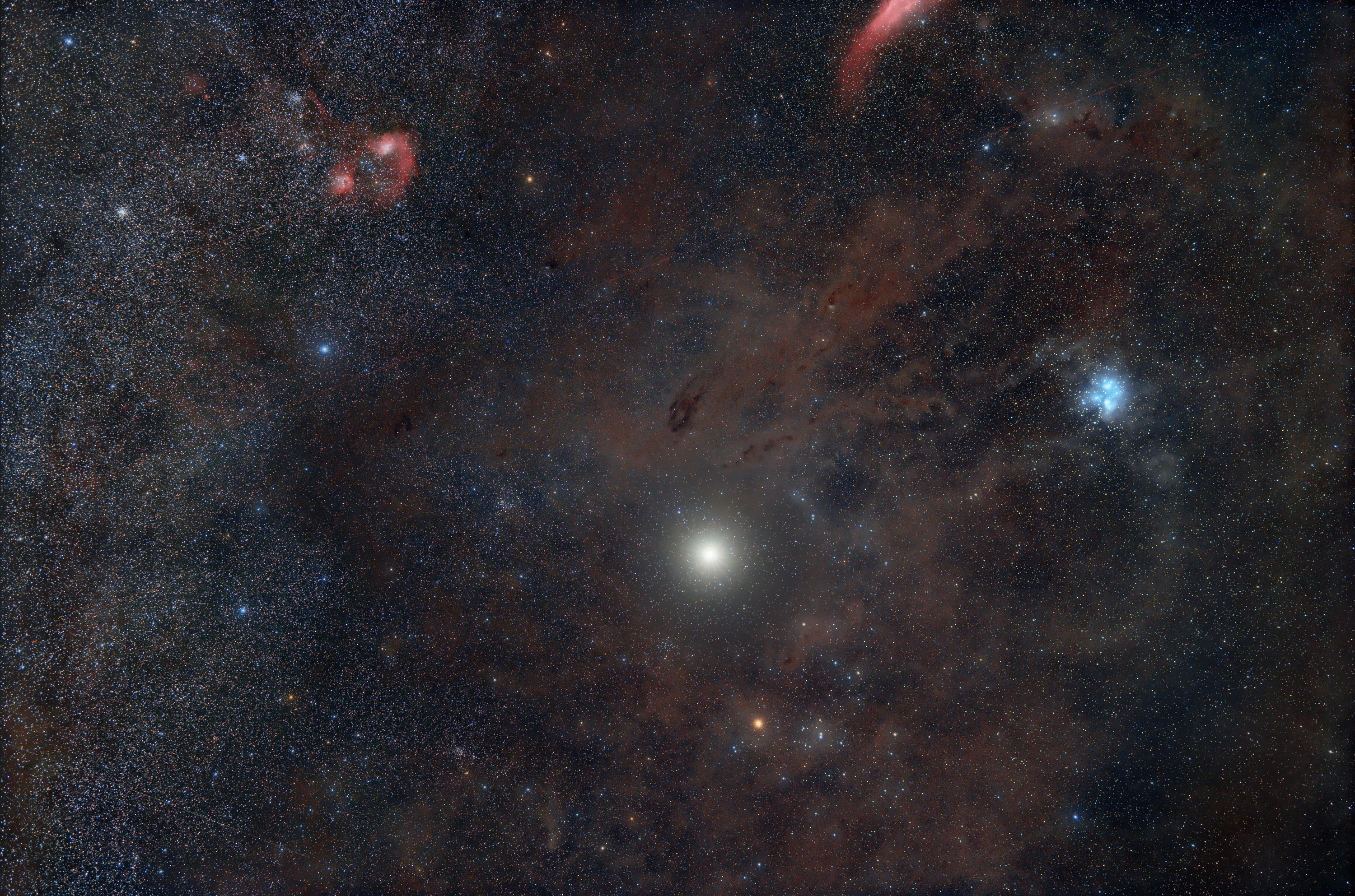 In einer besonders dunklen und transparenten Nacht ist diese Aufnahme von Jupiter im Sternbild Stier entstanden. Der Gasriese steht aktuell mitten in der Taurus-Molekülwolke.