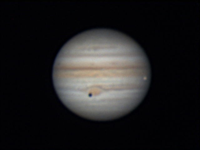 In der Nacht vom 29. auf den 30. Juli 2021 war es möglich, in Wolkenlücken ein paar Videosequenzen von Jupiter aufzunehmen. Bei dem linken dunklen Fleck direkt am GRF muss es sich nach Befragung von Planetariumprogrammen um Kallisto selbst handeln. Durch seine geringe Albedo ist Kallisto offenbar wesentlich dunkler als die Jupiterscheibe. Rechts vor dem Jupiterrand ist Io diesmal gut zu erkennen.