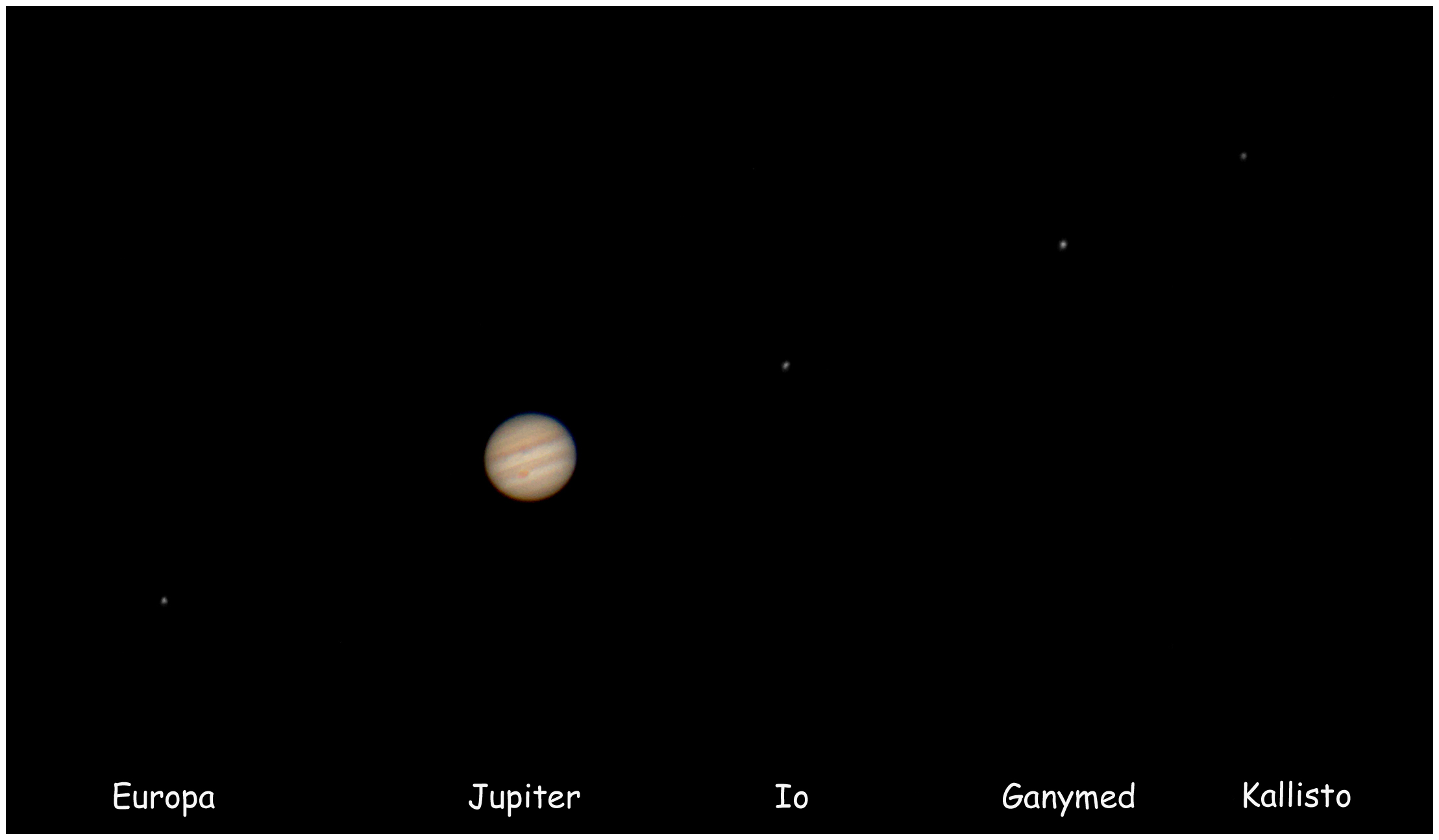Es ist nur ein Einzelbild, da aber Jupiter viel heller als die Monde ist, habe ich ihn getrennt von den Monden bildmäßig bearbeitet.